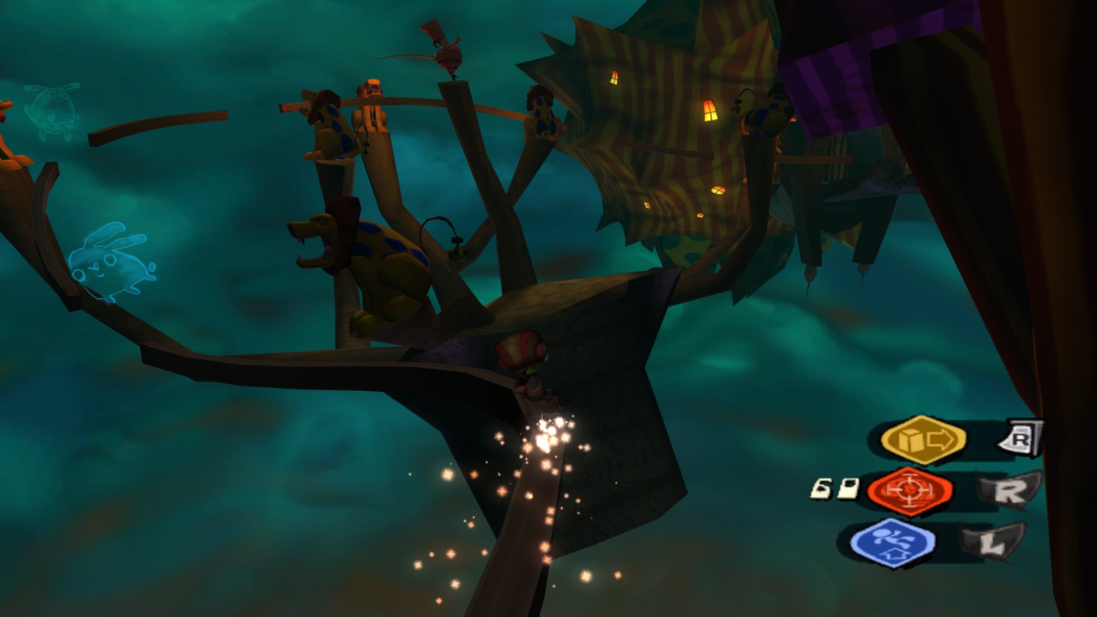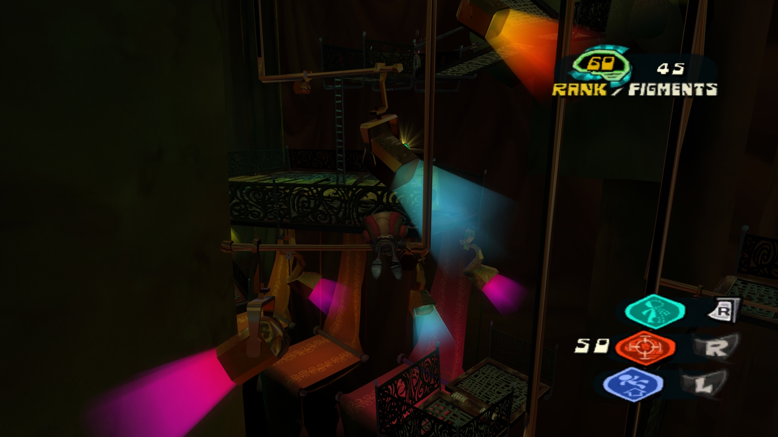 Now it’s time to climb the asylum. This is a straight platforming section in the real world, with only rats who explode in confusion gas to oppose you. It’s a nice break after a series of mental worlds, even if the rats can get really annoying with them reversing your controls and mirroring the world. The jumps you have to make and even just figuring out how to get somewhere can be challenging, especially if you’re trying to find all the kids’ brains which you can recranialize to increase your max health. As you move further upward, a mysterious girl will occasionally appear to scare you away or tell you it’s dangerous to move forward, but regardless Raz continues on and confronts Dr. Loboto…