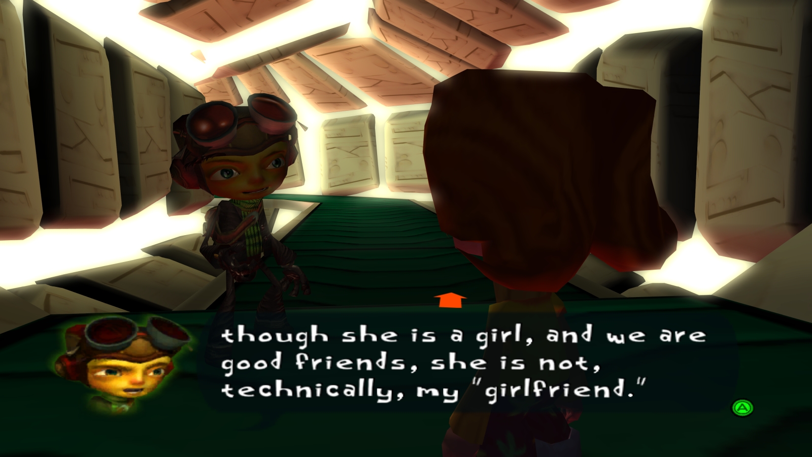 …Who easily captures him within his anti-psychic dome and puts Raz in a waiting room with Lili and an already de-brained Shasha and Mila. The mysterious girl turns out to be Dr. Loboto’s unwilling assistant named Sheegor, who is only helping him because he’s threatening to turn her pet turtle, Mr. Pokeylope, into turtle soup. If Raz can rescue her turtle, she’s sure he can come up with a plan to save everyone as he always tells her what to do. Using a cake, Raz can lure Mr. Pokelyope to a hole in his cage then use Telekinesis to lift him out. After returning the turtle to Sheegor, Mr. Pokeylope describes his plan in a very smooth voice. Sheegor brings the turtle’s brain to Loboto, who places it in his psychic tank prototype. Mr. Pokylope turns the tank’s weapons on the Doctor, sending him flying from the asylum. The group then recranializes Mila and Sasha who together free Lili from her bonds. This is the point of no return, so I hope you’ve collected everything you’ve wanted to by now.