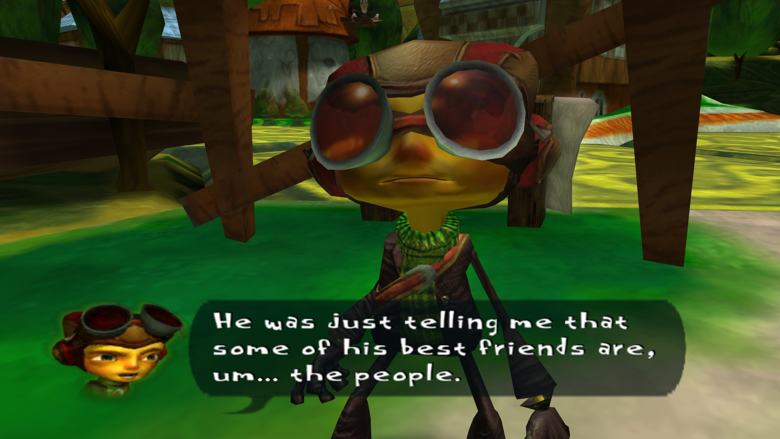 Competing Milla’s course will net you the Levitation badge for use in the real world, and before we head back to the brain tumbler let’s talk about two things: the art style and the characters. So after downloading the Game Pass version of Psychonauts, I was surprised to learn that it’s the exact same version that’s on Steam… that I already own. To that end, Psychonauts still looks distinctly of its era, textures are low resolution and animations can look weirdly stiff. Bumping the resolution up to the maximum possible didn’t really help much from a technical standpoint, but the game’s art direction is still so unique and striking I didn’t care about blurry textures or pre-rendered videos. With bright colors and a diverse cast of weirdly proportioned characters, Psychonauts achieves a cartoony aesthetic while always reminding you that something sinister lurks under the surface. That fun but creepy atmosphere carries over to the characters and is where a lot of the humor comes from. For example, it’s clear from the start that Raz is a very genuine and kind person but if, for example, you use Pyrokinesis on a few woodland creatures or seagulls he may randomly go from expressing remorse to cheerfully declaring “See you in Hell!” Another example are two of the campers, Clem and Crystal who are 10 and 9 years old respectively, appear to be extremely cheerful to an annoying extent. That is, until you find them drinking poison or standing on a roof looking over the edge talking about how they’re about to become unimaginably powerful. This dark sense of humor perfectly contrasts with the bright colors and the overall message of empathy to an absolutely hilarious extent. While I haven’t replayed the game in a while before this playthrough, even when I knew some jokes were coming I still laughed out loud. The sharpness and wit of the writing here is very rare.