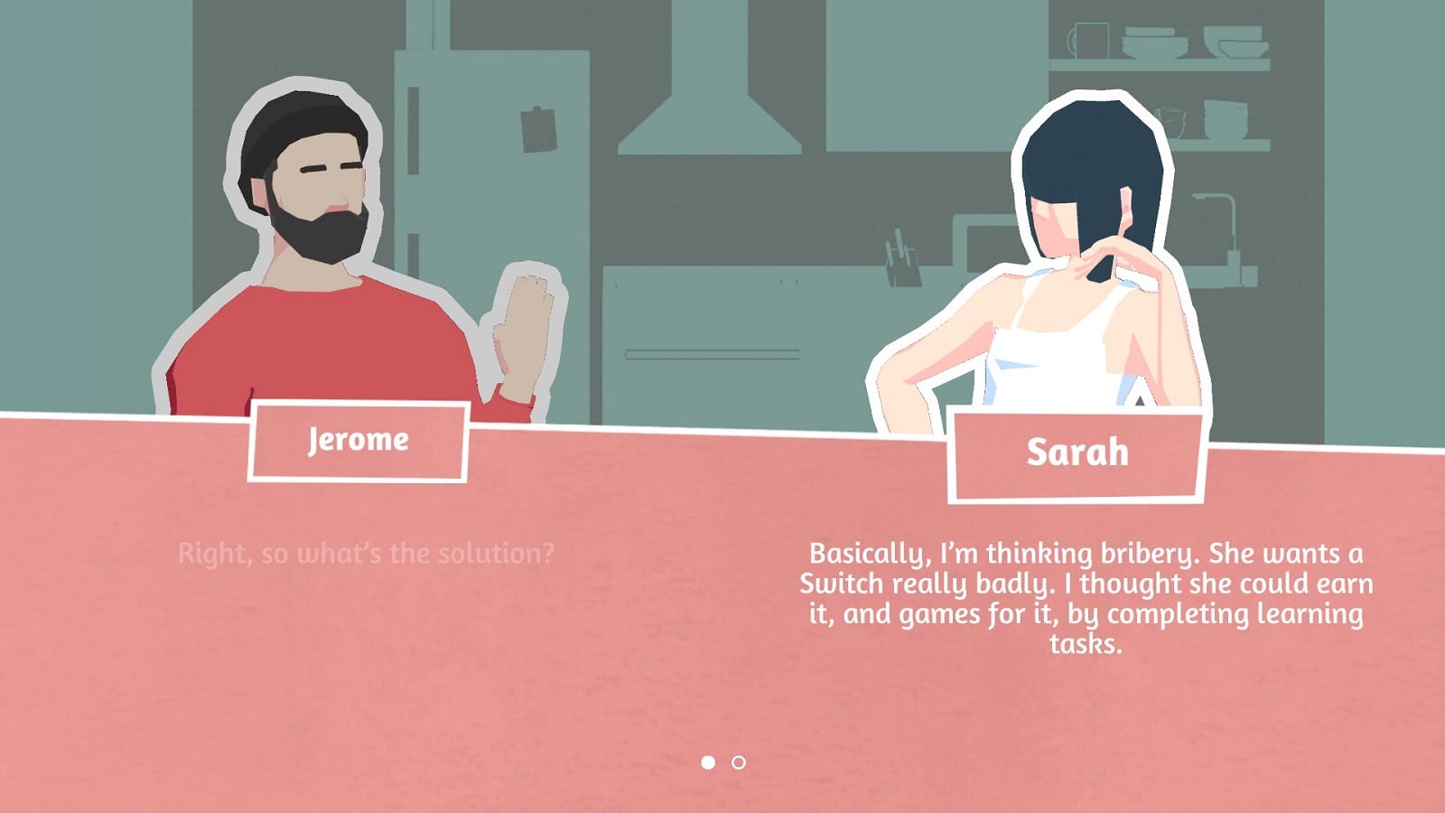 Subtitled “a Marriage Simulator”, Locked In tells the story of Jerome and Sarah, a couple living together with their child Grace during the pandemic. It’s a bit of a current event story the pandemic plot. You’ll need two players to play this game (one player uses the keyboard and the other uses the mouse). Considering the subject matter of the game, it does seem a bit weird to be in close contact with someone else in real life instead of social distancing, but perhaps that’s the point? Anyways, it’s actually a neat little visual novel where you both have to press your buttons in order to advance the dialogue, and the ensuing disagreements with each other are parallel to some conflicts that couples might have when raising a child or even going out in the time of a pandemic. This was a small little treat.
