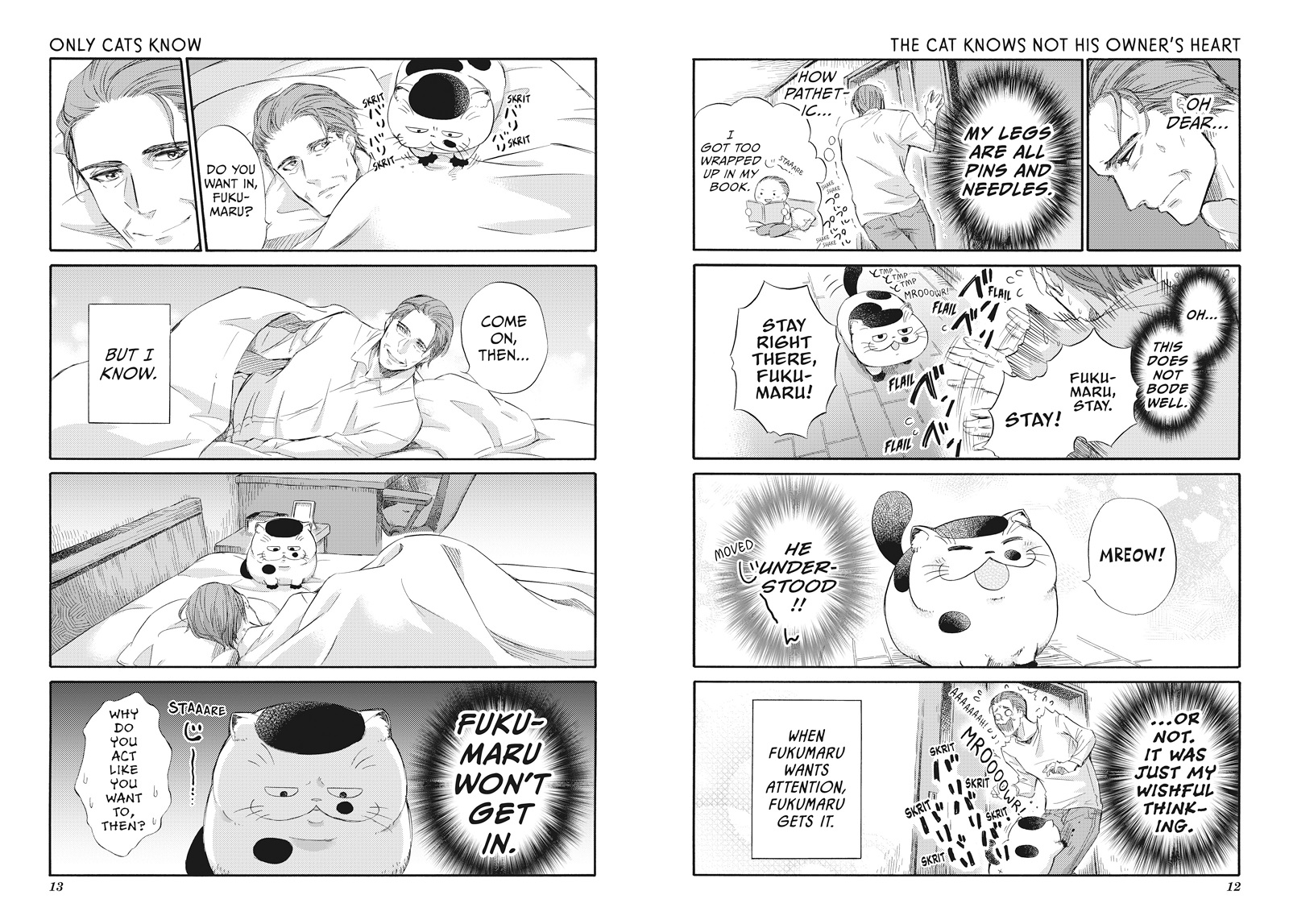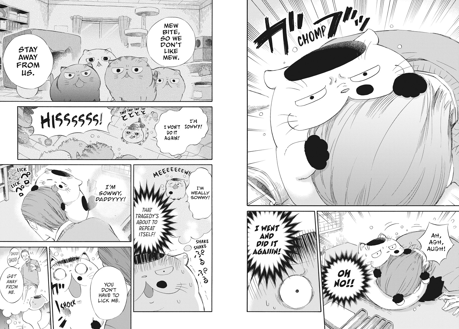 Like the previous volumes, these chapters include the slice-of-life adventures of elderly music teacher Kanda and his homely but adorable cat Fukumaru as the former becomes attached to his newfound feline friend. The author explains that around this time, the series was moving to other magazines, which means the four-panel structure that was prevalent in the first two volumes started to diminish in its frequency. Instead, we have longer chapters with storylines that reference the duo’s past lives before they met each other in the pet store. We also get some character development with the younger Moriyama (whose relationship with Mr. Kanda feels a bit ambiguous at the moment) as he tries to invite Kanda to a recital.
