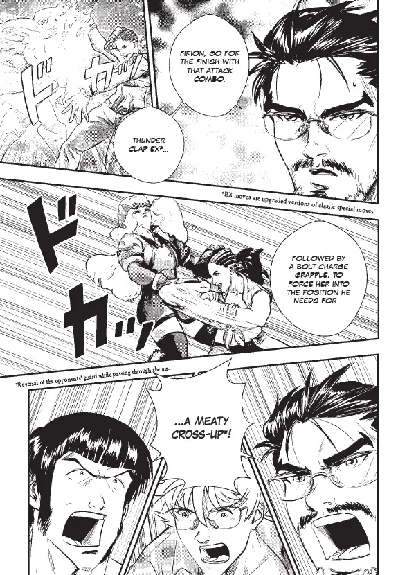 If there’s one thing that Versus Fighting Story does right, it’s that it explains fighting game jargon without being bogged down by too much explanation. You’ve got basic terms like reversals and stances to more technical ones like okizeme and meaty attacks, plus Street Fighter V-specific techniques like the V-gauge. If you’re completely new to the game and don’t know the history of it, then you might get lost but the manga does an excellent job of putting notes within the pages to briefly explain what’s going on. I also enjoyed the fighting guide at the end of the volume that explains some of the more technical aspects of what was going on in the matches.