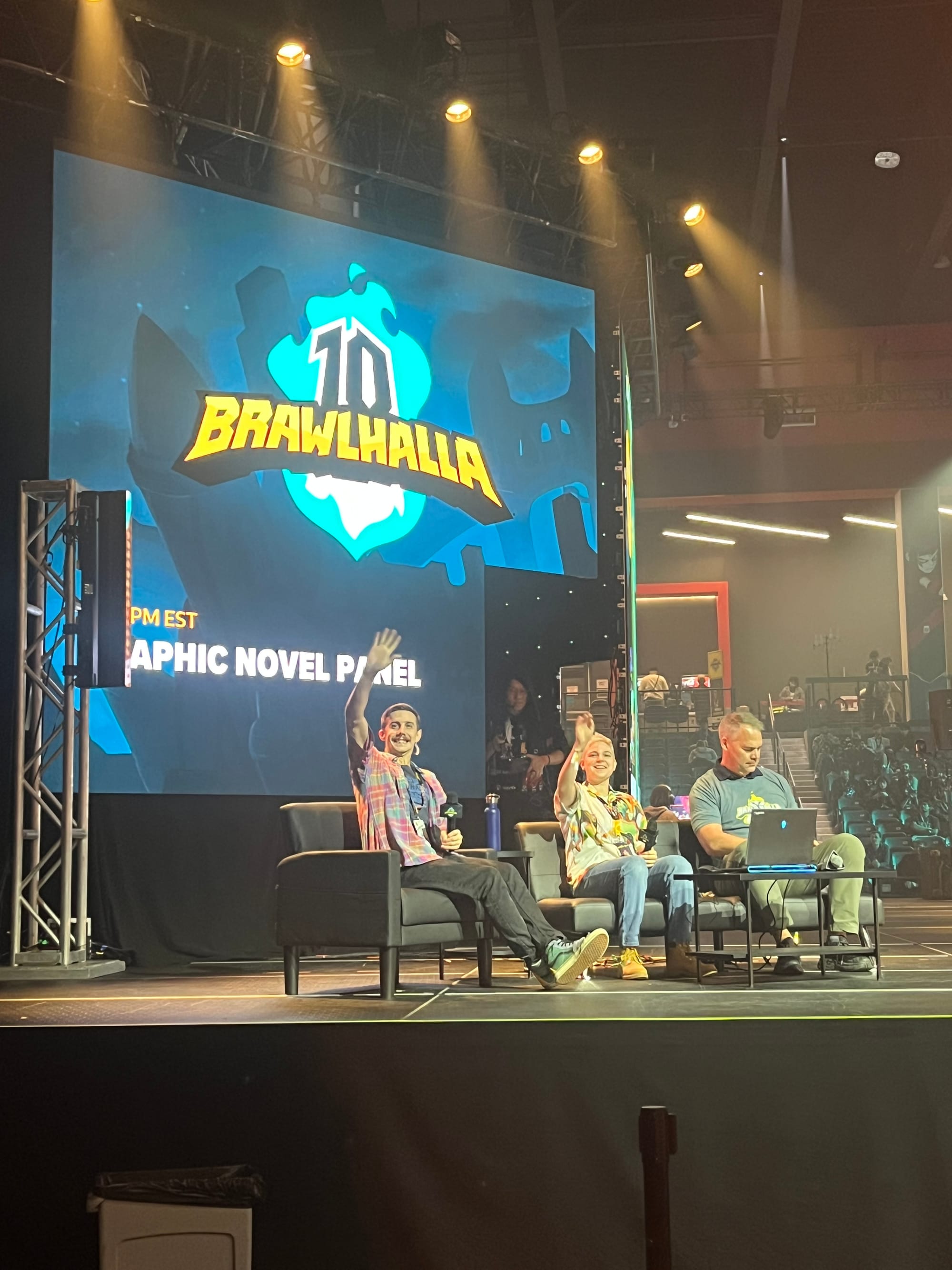 The panels were a lot of fun discussing everything Brawlhalla. One panel was on how Legends are made and the full process the team goes through to test the Legends before the release. Another was the cosplay contest which was extra impressive as there were 20+ contestants all with awesome cosplays of the Brawlhalla Legends. My favorite panel though (surprise since I’m a huge comic book nerd) was the Nix Graphic Novel panel where RJ Jost (Illustrator and Co-Writer) and Matt Woomer (BMG Co-Founder and Co-Writer) talked with Josh Kenneth (International Brand Manager) about their full process of creating a full Graphic Novel in collaboration with Dark Horse Comics set inside the canon of Brawlhalla. The level of detail was amazing and I personally cannot wait to read the full Graphic Novel myself.