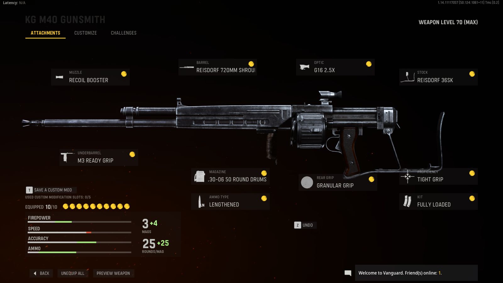On to the weapons, the KG-M40 is a really well balanced assault rifle, and even if it’s not better than the Automaton or STG-44, you can see it fitting well as a mid-range AR. It’s fast enough to maneuver with if you have the right attachments on (see below for my setup), and it’s got a good enough range to use it in a power position. It also packs a punch, hitting with precision, and if you’re rocking my loadout you’ll see almost no recoil. Honestly, it doesn’t have much recoil to begin with, and that accuracy can land you plenty of multi-kills. I’ve seen a couple of good setups for it in Warzone, but I don’t think it’s replaced the tried and tested ones yet.