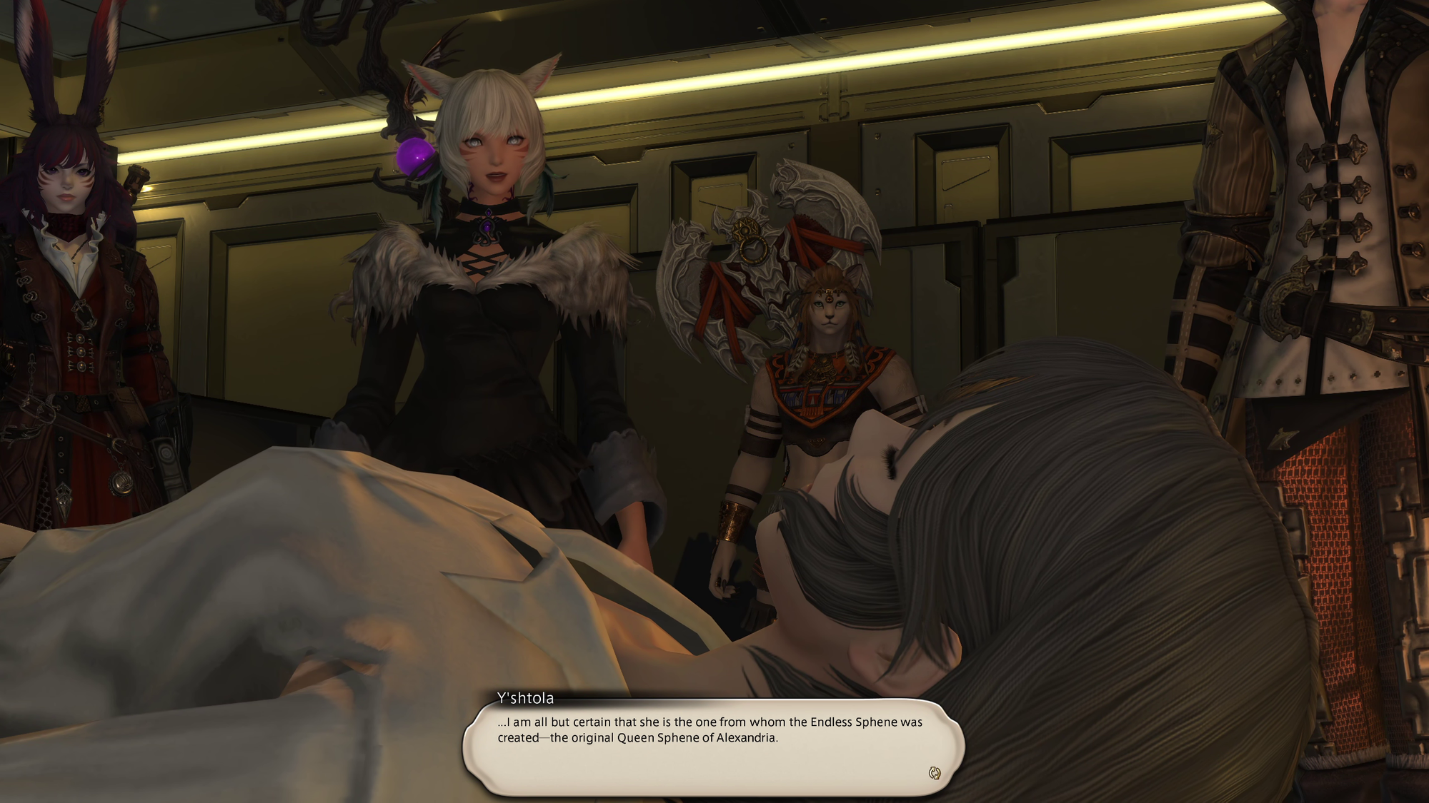 7.2 Seekers of Eternity begins where 7.1 left off, obviously. There’s a new Sphene in town, and she’s much more evil than the last one. Luckily, there’s also an old Sphene in town: the original queen of Alexandria. (If you’re keeping track, that’s now three total Sphenes so far. So the game decides to call the original Sphene just Sphene; the Queen of Reason we met in Dawntrail Endless Sphene; and the new, evil Sphene is the Simulant.) The patch story starts off slow, with the Warrior of Light, Wuk Lamat, and Galool Ja showing Sphene around Solution 9, but eventually picks up with a new dungeon and subsequent trial.