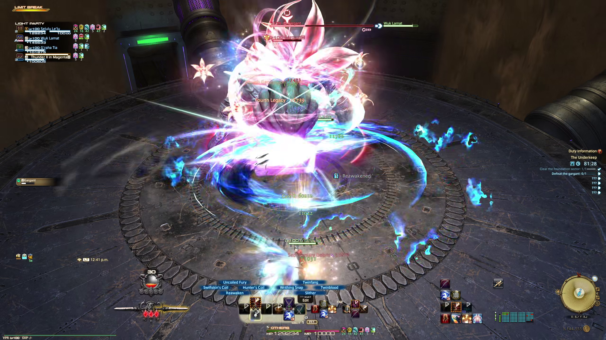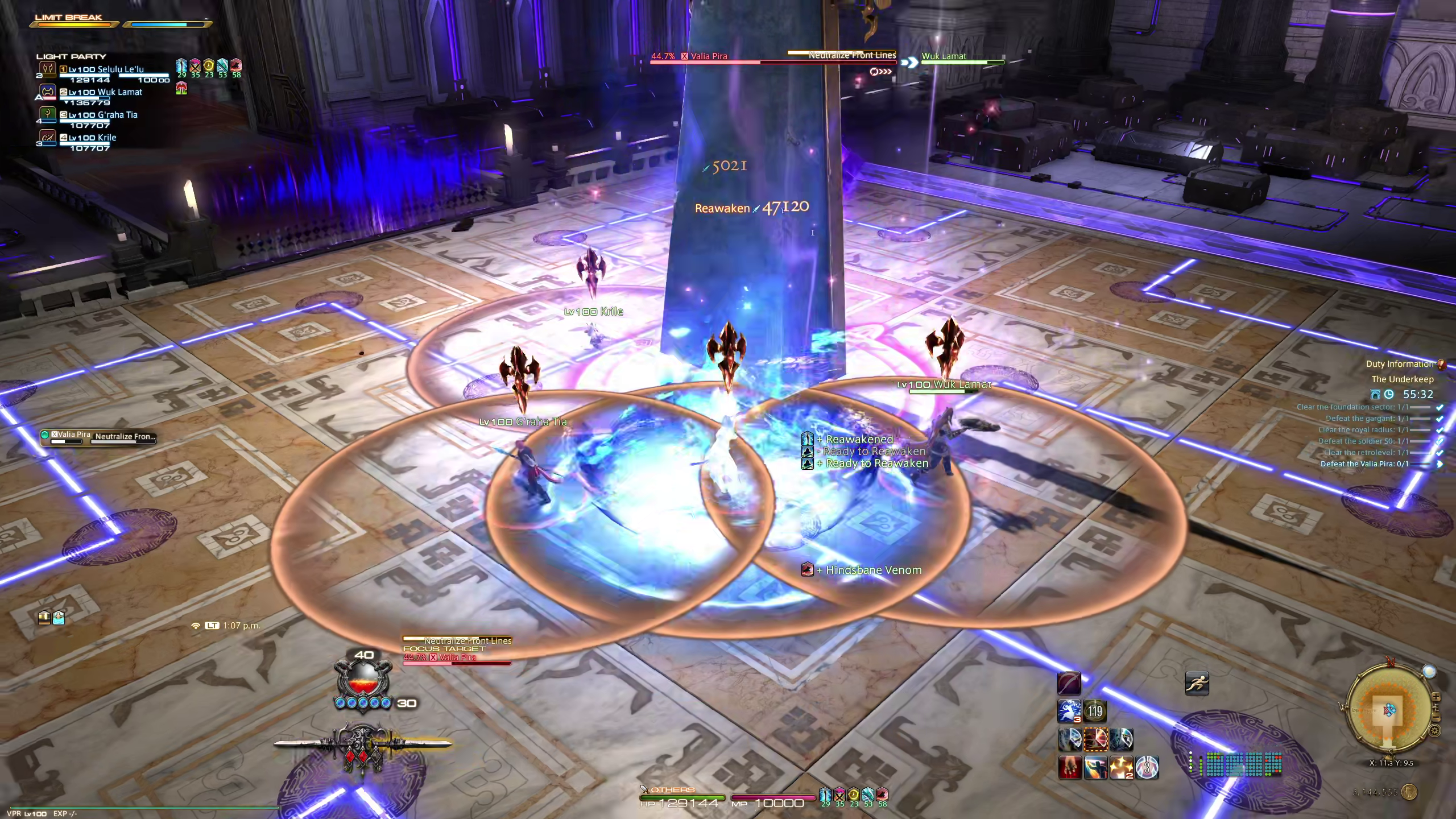 In terms of actually playing Final Fantasy XIV, however, I’m a bit more mixed. Specifically on the encounter design and their visuals. I died at least once on every single boss in the new dungeon, and my party wiped once on the trial as well. I can live with that at face value; XIV is often a bit too easy and I like needing to actually learn and try with bosses. However, there were multiple times where those deaths didn’t feel like my fault. In fact, G’Raha Tia and Krile got me killed at least twice each because I was doing the mechanics correctly but their AI had no wiggle room on positioning. Similarly, the trial boss will summon a deadly pink circle at the center of the arena she’ll stand in at times. Unfortunately, the rest of the arena shares a similar pink-ish hue, so it’s very hard to notice when it’s there or not. Stepping into the circle applied a debuff that is basically guaranteed to kill you, but only after a few seconds, making it harder to tell what you did wrong when it feels like you just dropped dead from nothing.