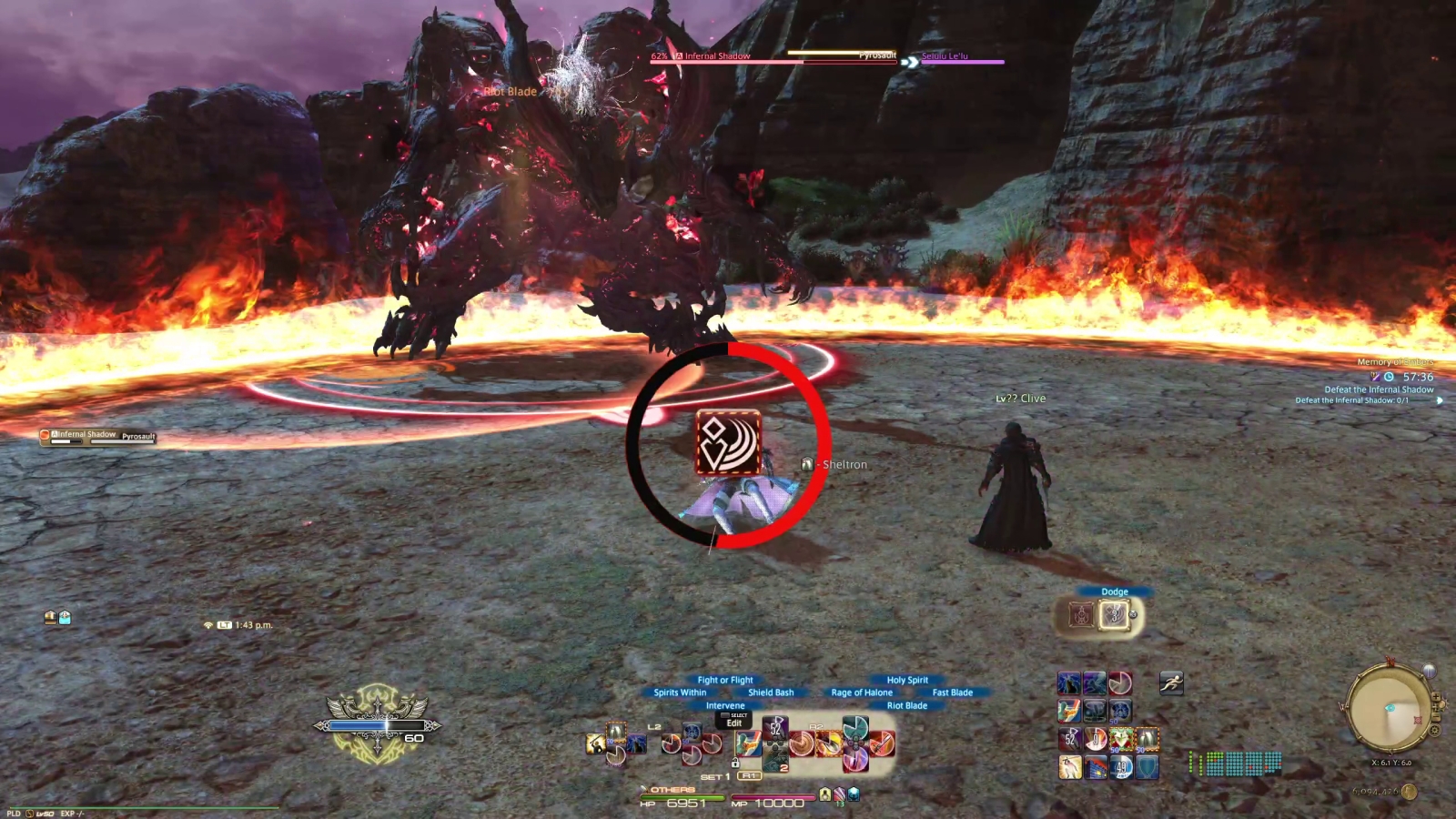 Eventually, you’ll be sent to the Bowl of Embers to battle Ifrit once more – though this time it’ll take on the design from XVI. This battle adopts some of XVI’s mechanics, including precision dodges and Rising Flame. Both of these actions are accessed (on a gamepad) by holding either the left or right triggers and pressing R3 just like other Duty Actions. Rising Flame is a gap closer that deals a decent amount of damage, while the dodge is a bit more complicated. Ifrit will constantly be using attacks that are unavoidable normally, but pressing the dodge button once an on screen counter reaches zero will have you deftly avoid damage. You can then press the button again for a Precision Strike counter. It’s a little janky, but very fun once you get the hang of it. All these moves are accompanied by flourishes from FFXVI’s HUD which is a nice touch.