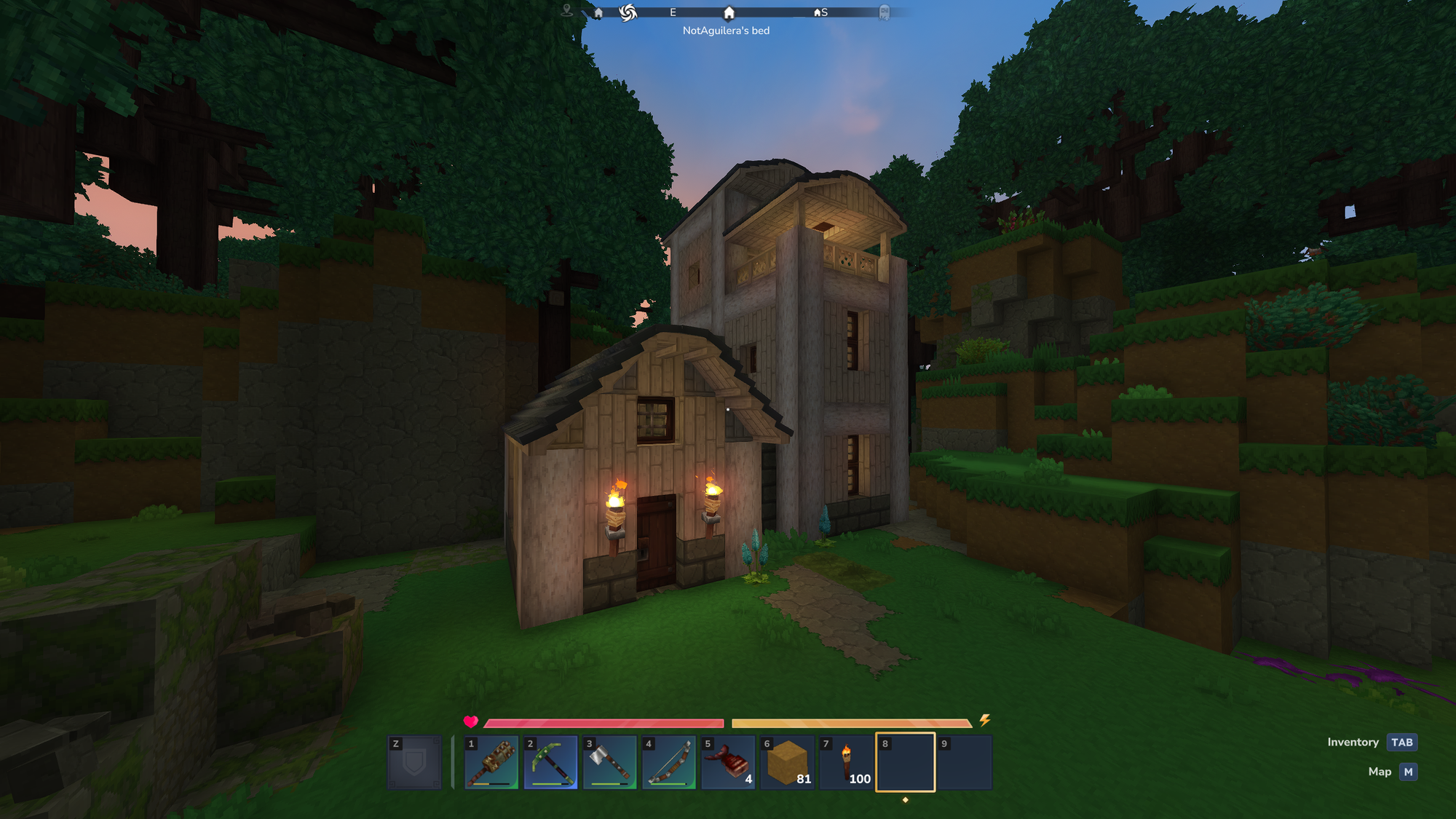 In its early access state, Hytale currently offers two game modes: Exploration Mode, a survival-based discovery mode focused on resource gathering, adventure, building, and combat, and Creative Mode, a god-mode sandbox experience with infinite resources, flying, and world-editing tools like terrain paintbrushes and the ability to copy and paste your builds. A third game mode called Adventure Mode is in development, with the experience being more akin to an action-RPG, centered around gear progression, dungeon conquering, and an interactive story. Though Creative Mode (and building in general) is robust and generally very user-friendly, I've spent the majority of my time in Exploration Mode, exploring and adventuring within the blocky in-game world.