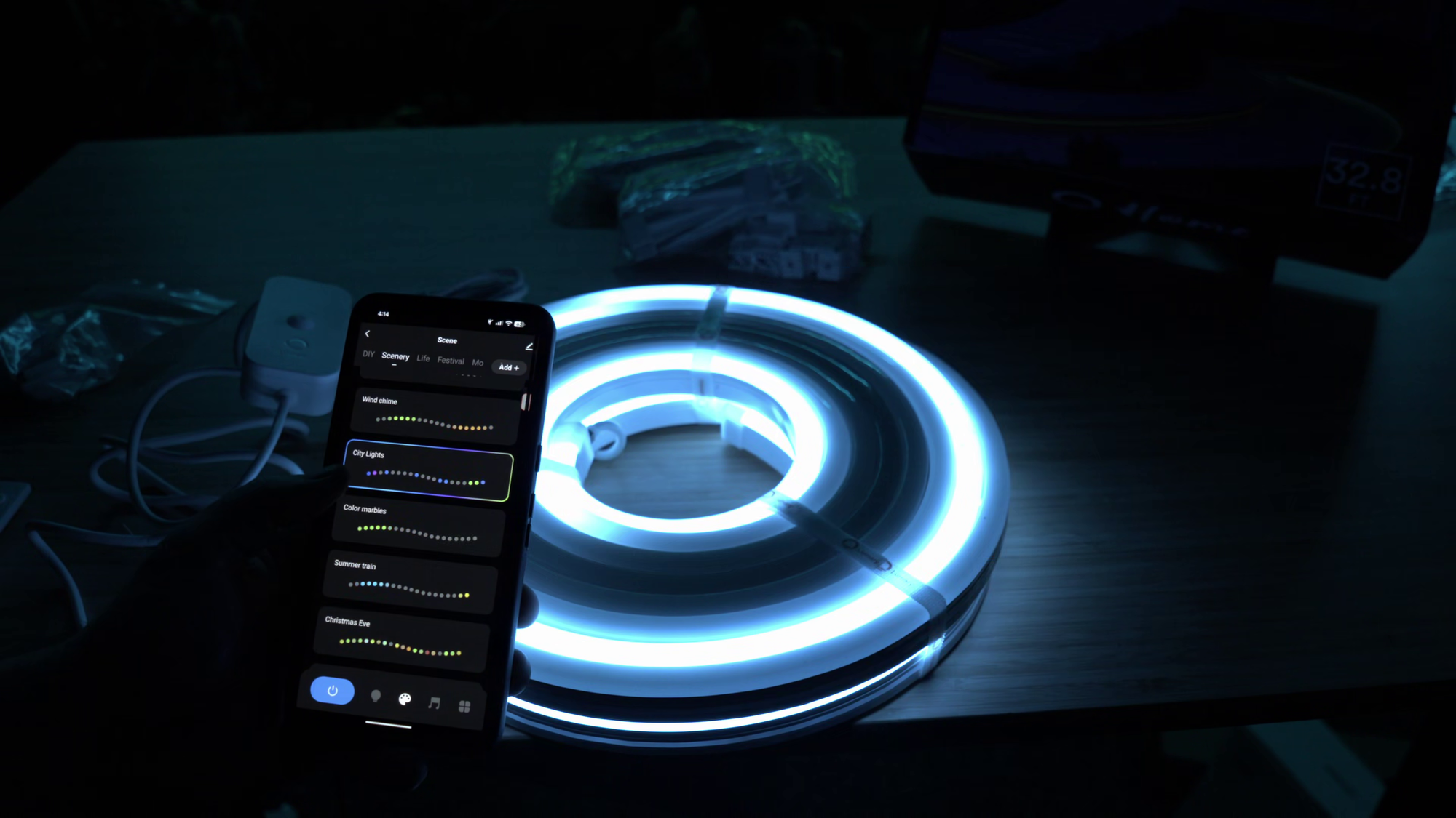 One standout feature of this lighting system is its use of RGBAI LED technology, packing over a thousand addressable LEDs in 16 feet of rope (double that for this particular box), vivid colors and over 40 smooth transitioned patterns. The rope light supports dynamic lighting effects, defined or DIY color patterns, and tunable white temperatures ranging from warm 2200K to crisp 6500K. You can even make them dance to music!