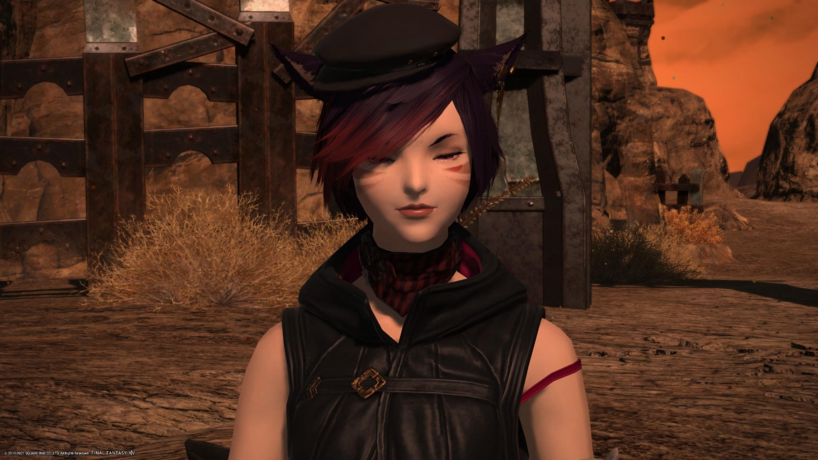 Not exactly the most flattering shot of my face, but the jump in quality is apparent. The buckle has detail and depth to it, and there are folds in the hoodie and scarf that make it look more like real clothing. PS3 support ended with the launch of the previous expansion, Stormblood, so of course textures and models added after that point are going to look better, but at this point having such a gap in quality is jarring. It would be a daunting task to go back and update thousands of pieces of gear, but it might be worth it to stay competitive in the visual department, especially if the dev team takes the time to add headgear to the Viera and Hrothgar faces (please? I want to be a bun, but hats and other hairstyles are just too cute!). There are probably a lot of people trying out this game for the first time with the generous free trial and lull in big releases on PS5, and I wouldn’t want them to miss out on the excellent story and gameplay just because they thought the game looked too outdated to be on PS5.
