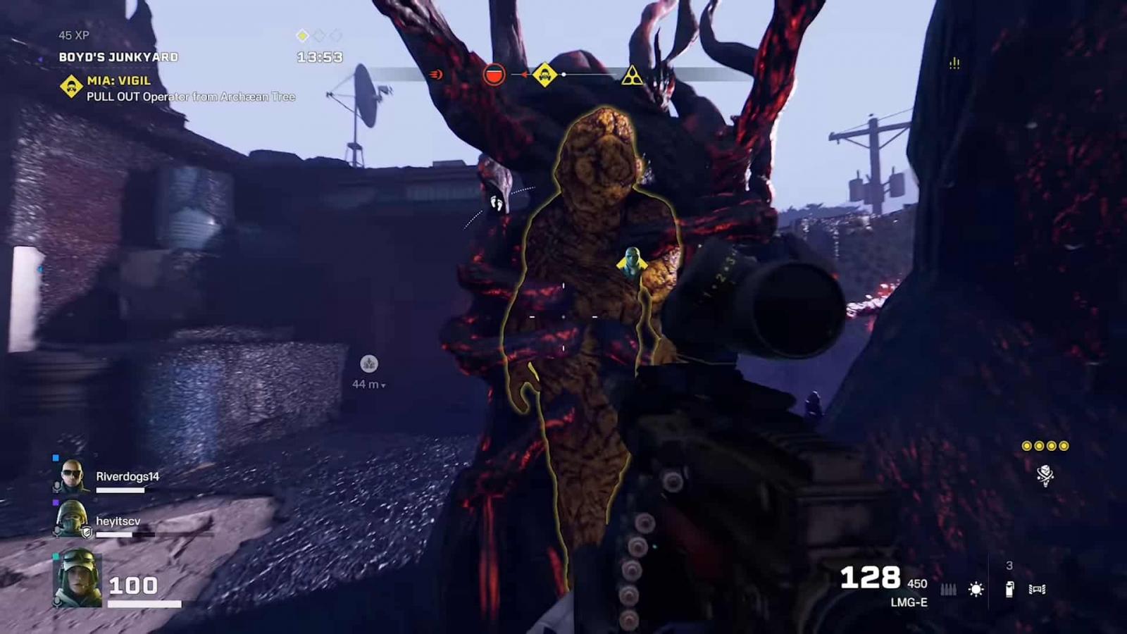 Sadly, due to some restrictions, we were only able to play through the Hot-Zones prior to the game’s launch, with each map consisting of three separate zones. Each zone is teeming with Archaeans and are comprised of the missions mentioned earlier. These missions can be played solo or with a group of two to three people and have four difficulty settings to choose from known as Threat Levels. Threat levels range from the easiest, “Moderate”, to the hardest, “Critical”. However, regardless of the difficulty setting you to choose, these modes will always put your team through the wringer. Enemies are easily alerted to your activity and are relentless. Some objectives aren’t easy to find, and each mission is on a strict fifteen-minute timer. Don’t be surprised if you find yourself and your team struggling at first, as many tactical approaches will be needed to succeed. Also, I found that these modes aren’t nearly as fun playing alone compared to playing with a dedicated team. It just feels like a daunting and soulless task even after completing all of them.