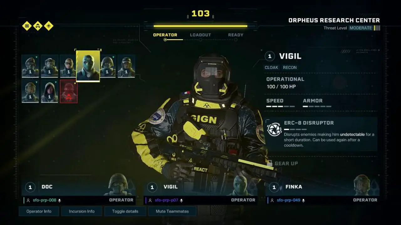 Much like Rainbow Six Siege, each mission (referred to in the game as Incursions) begins by selecting an available map with your squad and choosing one of the 18 available operators seen in Siege. Each operator has their own unique set of weapons and gadgets. For example, Sledge’s hammer that can break down walls and stun enemies, and Alibi’s decoys that can be used to distract surrounding enemies.
