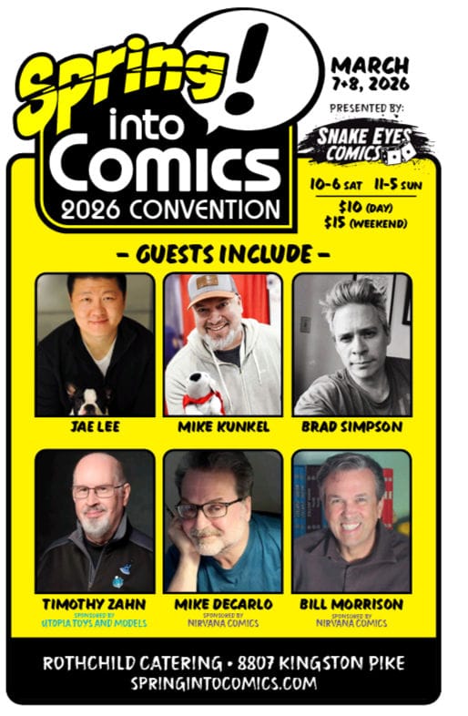 Rarely can you find anything to do for $10 a person, not to mention getting the kids in for free, right? Well, every trip around the sun for the last seven trips, Jonathan Beckner from Snake Eyes Comics in Knoxville, TN has put together a convention called Spring into Comics! the entire family can attend affordably. This year, like every year before, I made the trip back to Knoxville to attend. This year, bigger and better than the year before, was a huge success! Let's figure out why!