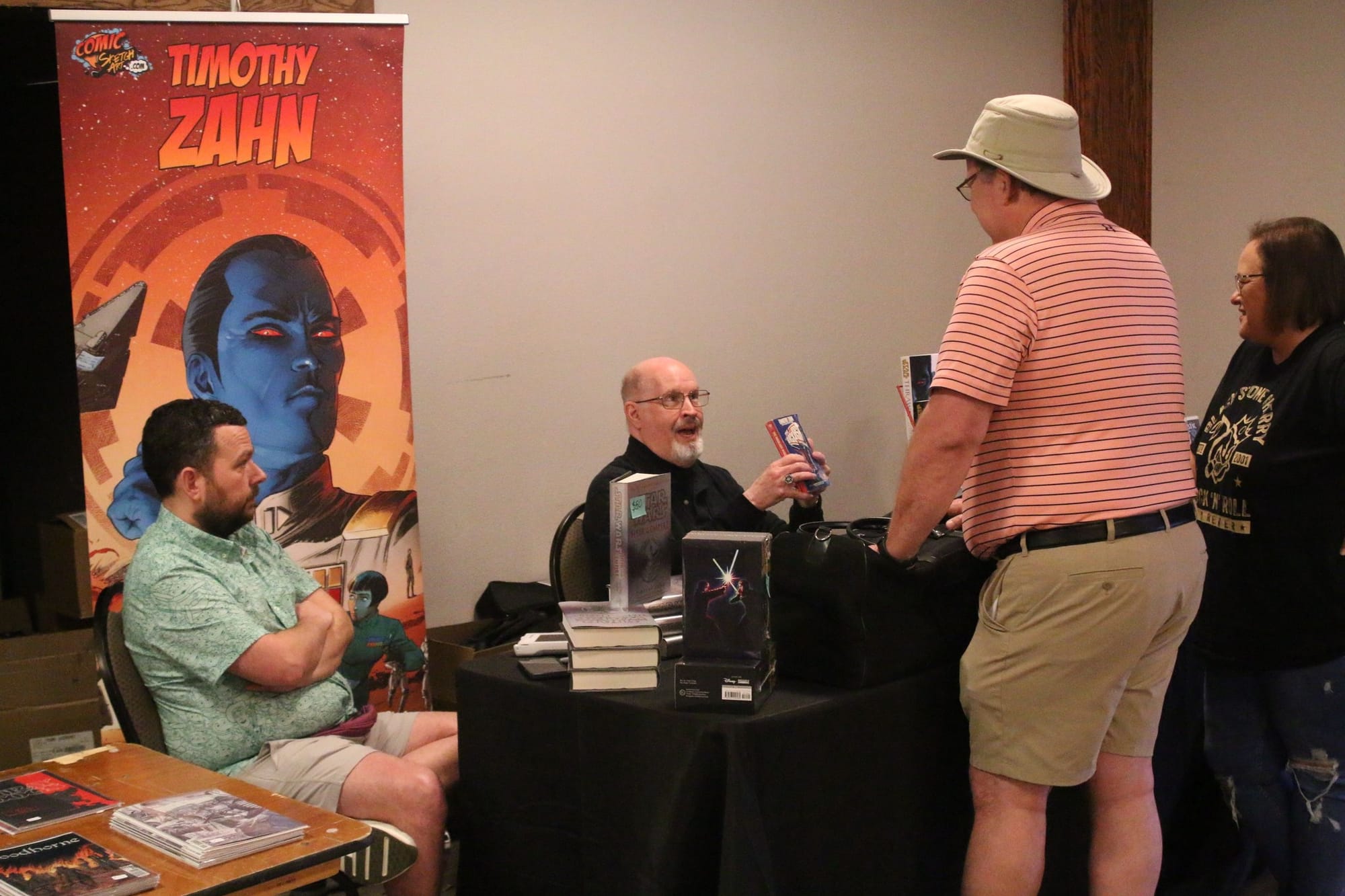 A really cool part of conventions is meeting creators and artists who have impacted the landscape of different mediums and genres. This year, Spring into Comics! had a comic-lovers dream lineup (and a superstar Star Wars guest). These included Jae Lee (Superman, Sentry), Brad Simpson (Feral, Stray Dogs, Invisible Man), Mike Decarlo (Batman: Death in the Family, Legion of Super-heroes, Tales of the Teen Titans), Mike Kunkel (look him up, he was a lot of our childhoods), and more! For some icing on the cake, they got Timothy Zahn! Zahn is the mind behind Grand Admiral Thrawn (the Thrawn Trilogy in Legends and the Thrawn series in canon), the Icarus Series, the Dragonback series, and so much more!