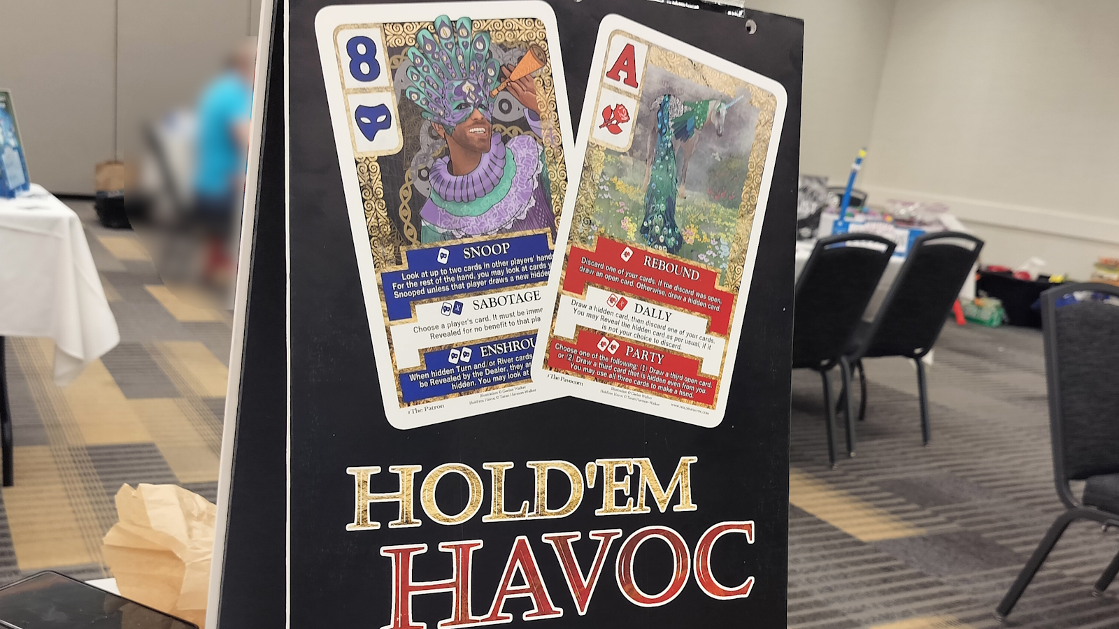 Hold’em Havoc is best described as “what if Texas Hold’em, but powers?” If the recent success of Balatro is anything to go by, the basic mechanics of poker are ripe for alteration and improvement. Hold’em Havoc does this by creating special powers for each suit of cards, a total of 3 powers for each. To activate a power, a player simply reveals one or both of their cards. Revealing one of the same suits creates a weaker effect, revealing two cards that are off-suit creates a medium effect, and revealing a pair of the same suit creates the strongest effects.
