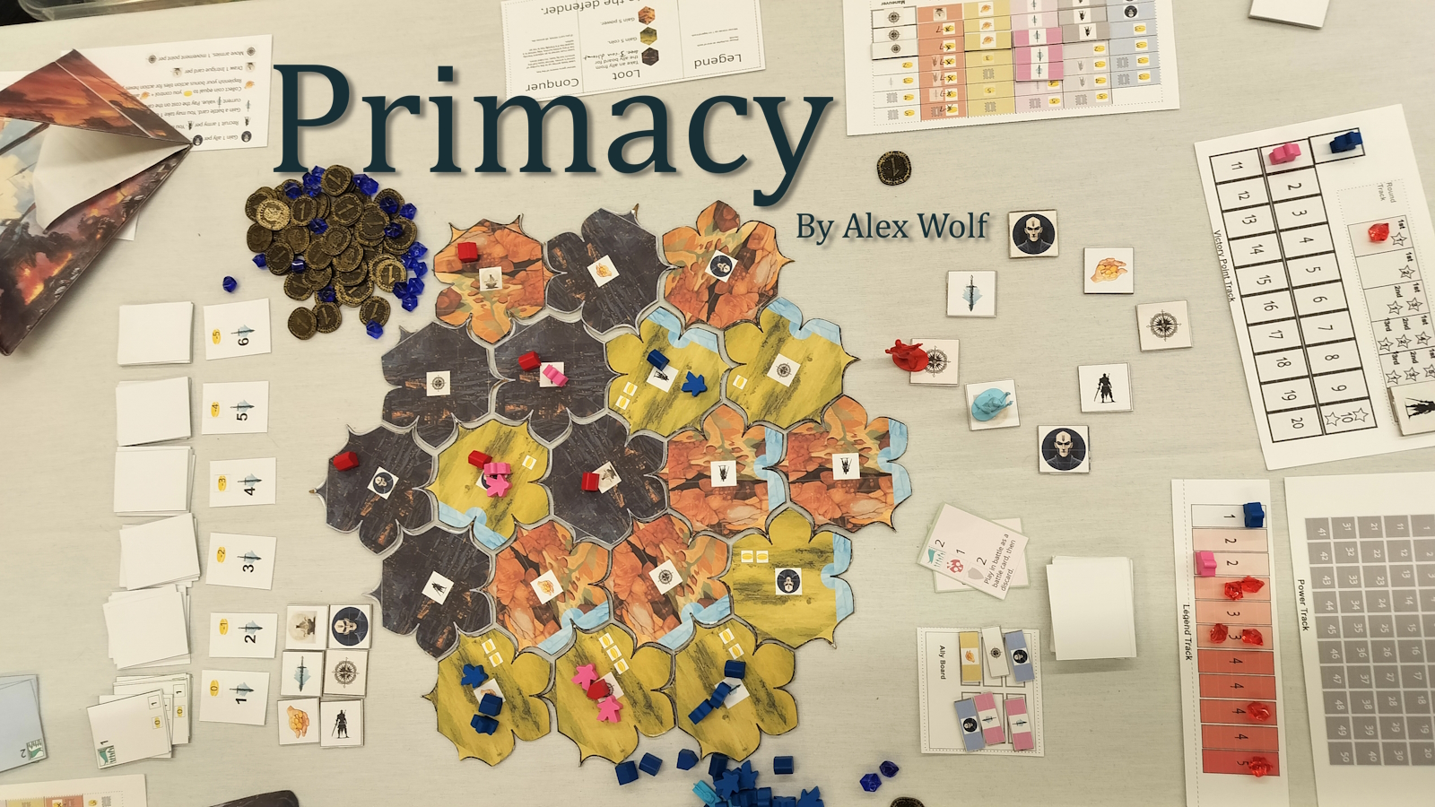 This one is a bit of a cheat on this list, since unpublished games are, by their nature, lacking a publisher. Alex Wolf of Spielcraft Games is already an established game creator and publisher, but brought his newest game Primacy to Origins, so I figured I’d mention it here.