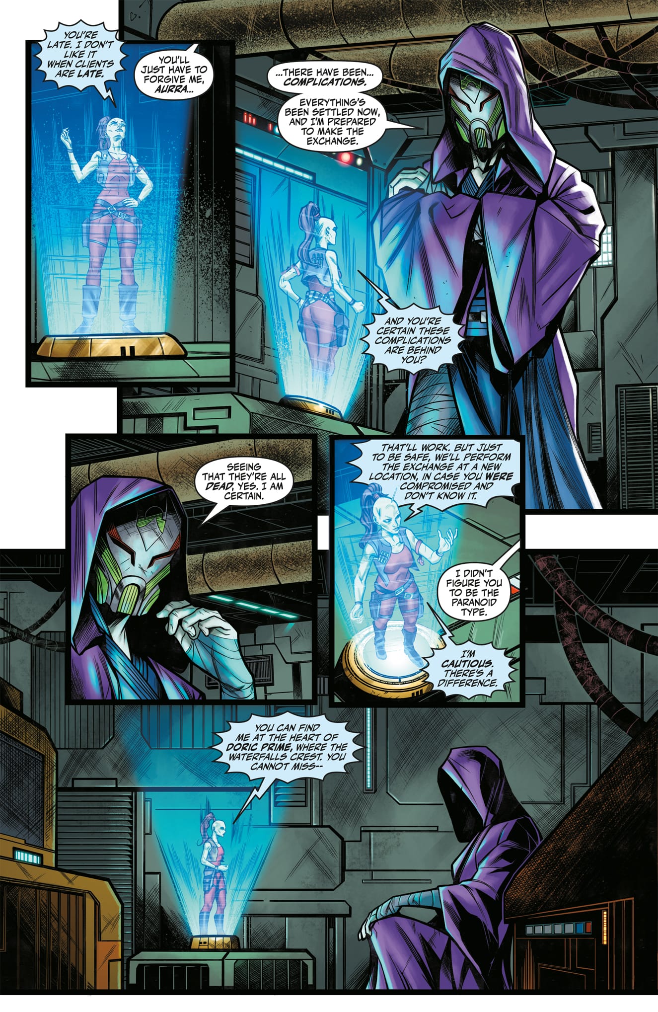 While there, Hunter end up on his own and is able to record a conversation between a mysterious stranger (who Star Wars fans will clock quickly) and Aurra Sing, bounty hunter from Episode I, Clone Wars, and mentioned in Solo: A Star Wars Story.