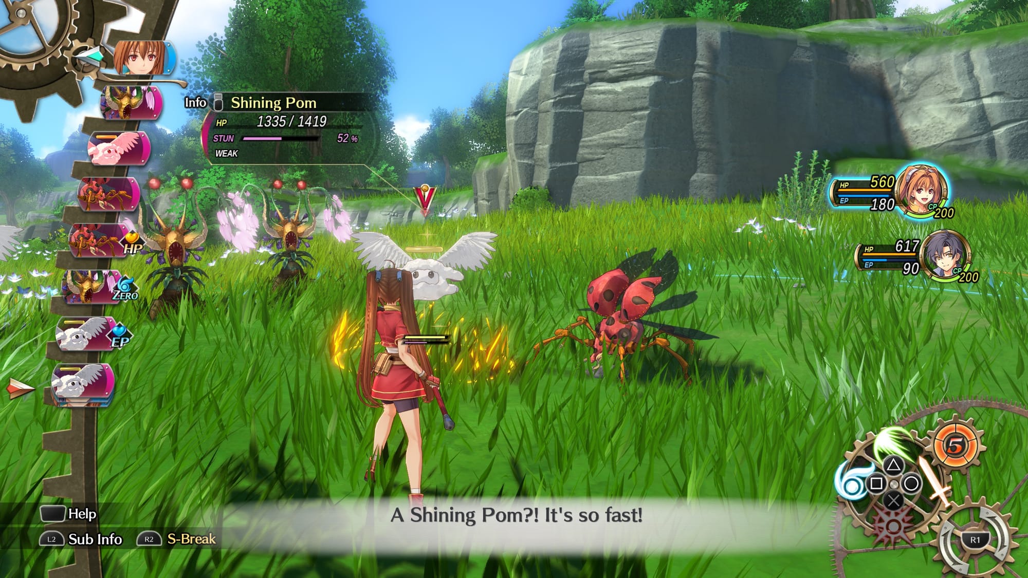 If you don’t immediately take everyone out, you can get into the meat of turn-based combat, which the game refers to as Command Battles. The basics systems haven’t changed too much since the original Trails in the Sky, but everything’s been tightened up, rebalanced, and made much, much faster. On the left side of the screen you can see the turn order, and how your currently selected action will affect it. Turns may also come with special bonuses that are key to take advantage of, such as instant, 0 AP cost spellcasting, critical hits, or free healing. Critical hits are especially crucial as you can use them to trigger more Brave Attacks.