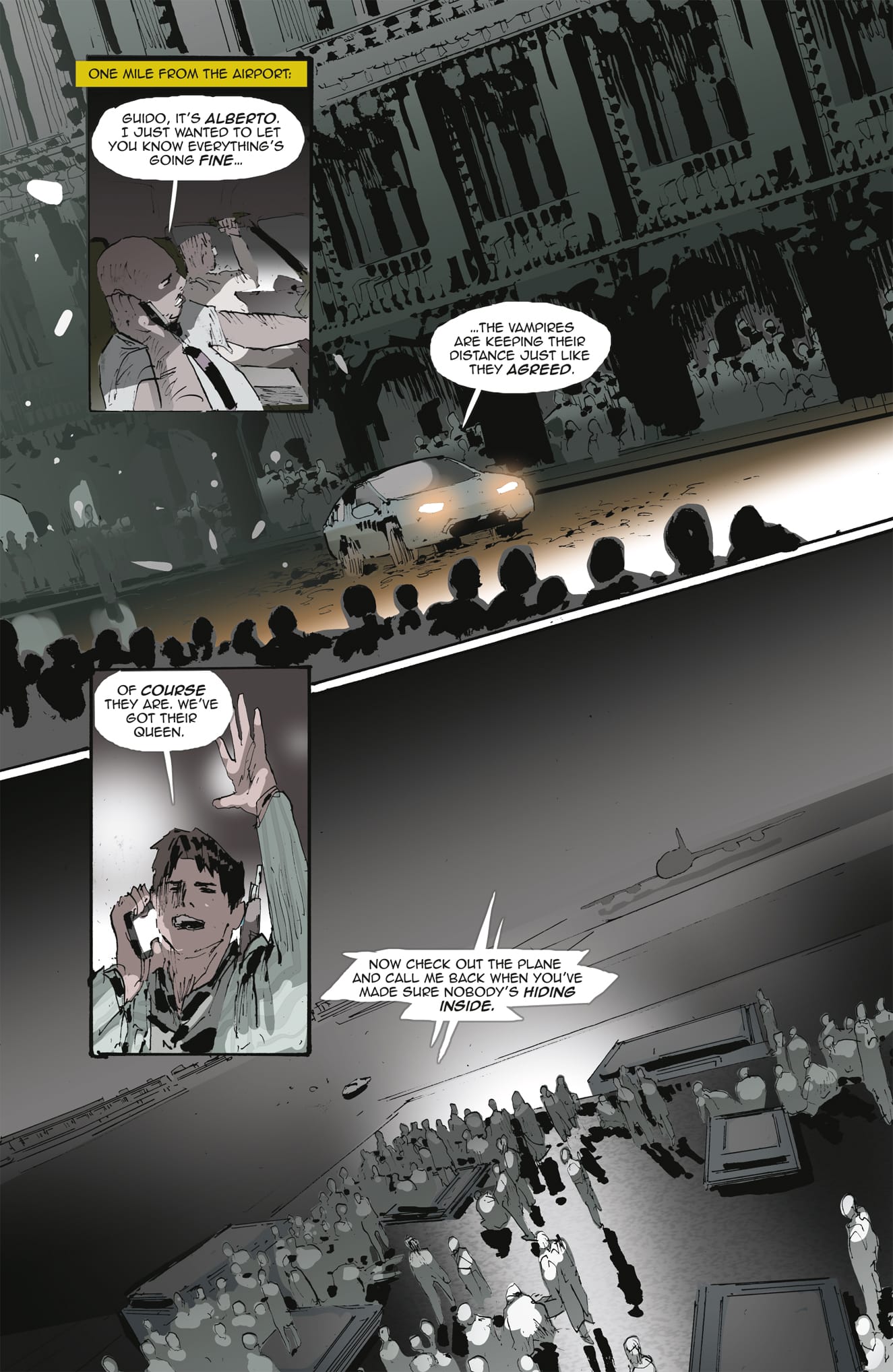 I loved how the art really added a lot to the fears of the unknown. While we see faces and eyes in particular, everything when it comes to the vampires are covered in mystery. We never actually know where they came from or their end goals, but in this one particular instance at the Vatican, they're there for their queen. The art showing shapes and eyes really bring the mysterious-ness home.