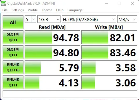 Like all of my benchmarks, I ran everything you see below at least 3X to ensure that the results are consistent. For frame of reference a microSDXC card is typically rated at a max read of 130MB/s, and while we are at it, let’s break down those letters. Micro means…well, it means that it’s small. In this case, the smallest one you’ll buy as a consumer, being slightly larger than your index fingernail. The four letters after have some specific meanings, so let’s break those down further as they are far from interchangeable.