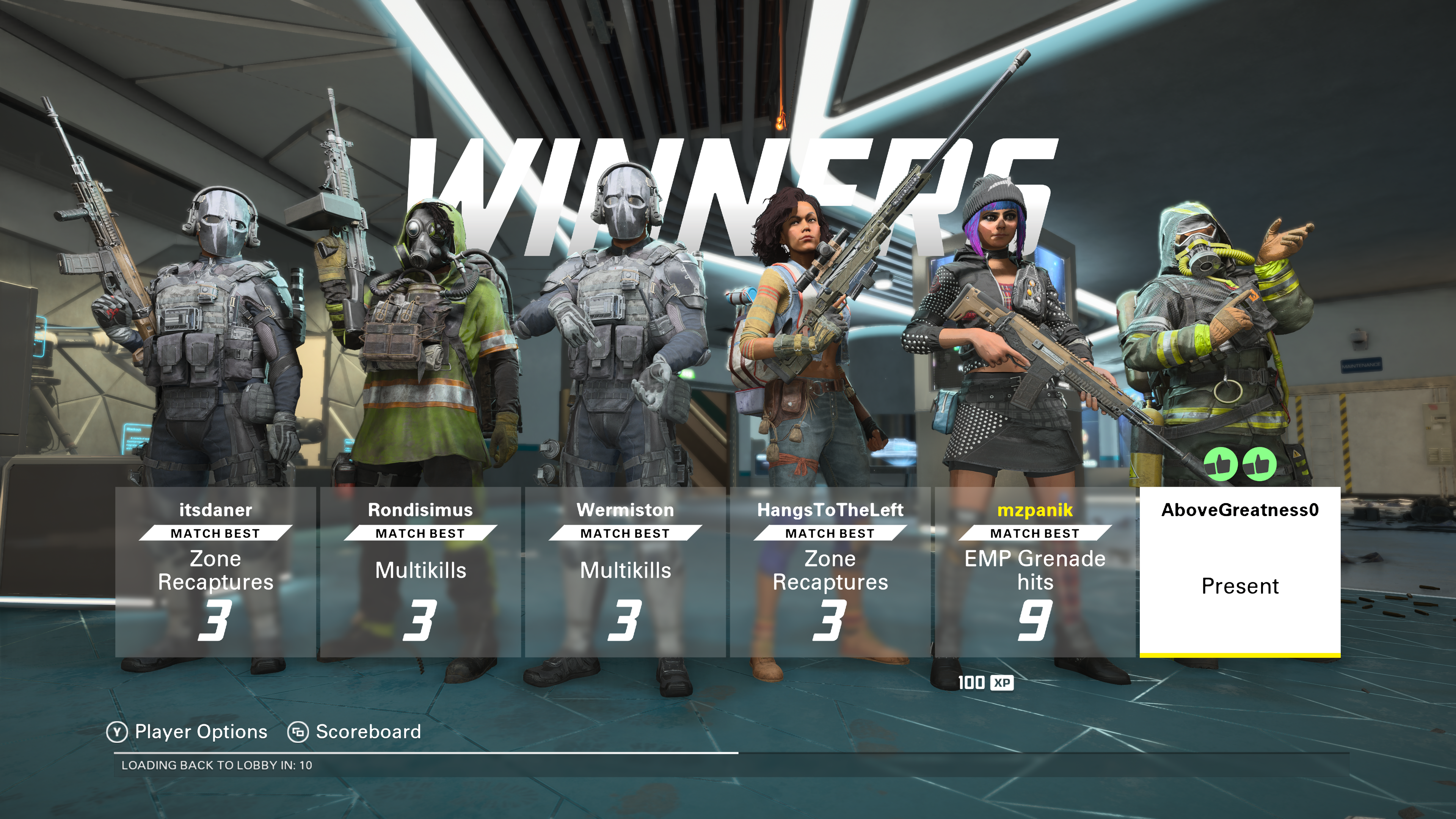 A couple of fun things they’ve included for player-to-player interactions are the post-match high fives and death emojis. At the conclusion of a match, you’ll see your team lined up with whatever their contribution was. Some of the highlights you’ll see are who had the best Kill/Death Ratio, the most objective time, and the most healing, but then there’s also “Ran Around” and “Moral Support” for those who maybe didn’t do as much as they probably could. I got “Moral Support” once after joining towards the end of a match. On this screen, you can also click on a teammate’s contribution highlight to give them a high five, giving you 100xp and the recipient 200xp. For the death emojis, when you die you can select from a handful of emojis to react to the death, which shows up in the kill feed alongside your death. Give a thumbs up if it was a well-earned kill or a mad face if you’re getting curb-stomped. The high fives and death emojis are a silly little addition that I feel aim to put a little smile on one’s face.