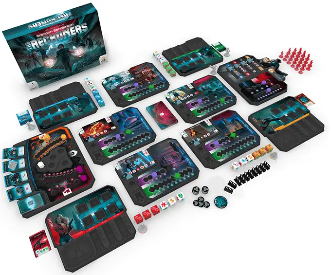 We first became fans of Brandon’s work when he finished Robert Jordan’s The Wheel of Time, and we have been huge followers ever since. One day, we saw him at a book signing event and simply asked him how to go about potentially licensing his books for a game. We were put in touch with his agents and sent them a copy of our previous game, Stockpile. They loved it! From there, it quickly turned into a discussion of what content and what game. We believed that The Reckoners would make for an awesome tabletop adaptation due to its unique IP, and we pitched our concept for a simultaneous, dice-based cooperative game. The team was excited about the idea, so we continued to court them for the license until we reached a final agreement and locked in the game’s design. Throughout the process, the folks at Dragonsteel Entertainment and JABberwocky have been extremely gracious with their time and feedback, and we’re thrilled to be working with them to bring Brandon’s novels to life and create games that make memories around the tabletop.