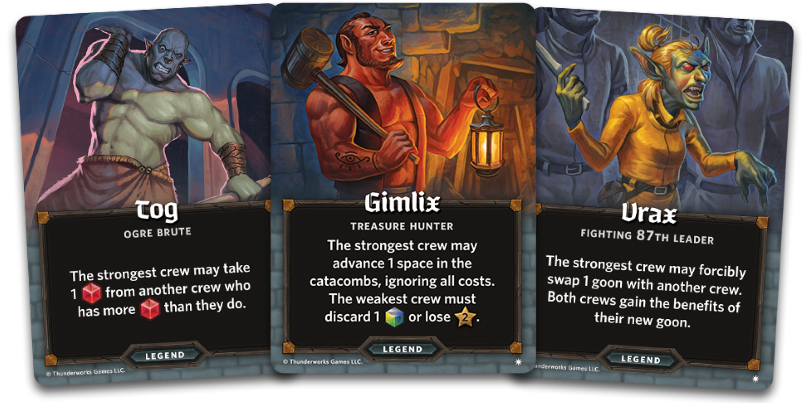 But everything is influencing each other behind the scenes. For the Lockup expansion, we made “legend” cards which were based on Roll Player Adventures characters written the previous year. I’m not even sure if some of them had been revealed during the kickstarter campaign at that point.