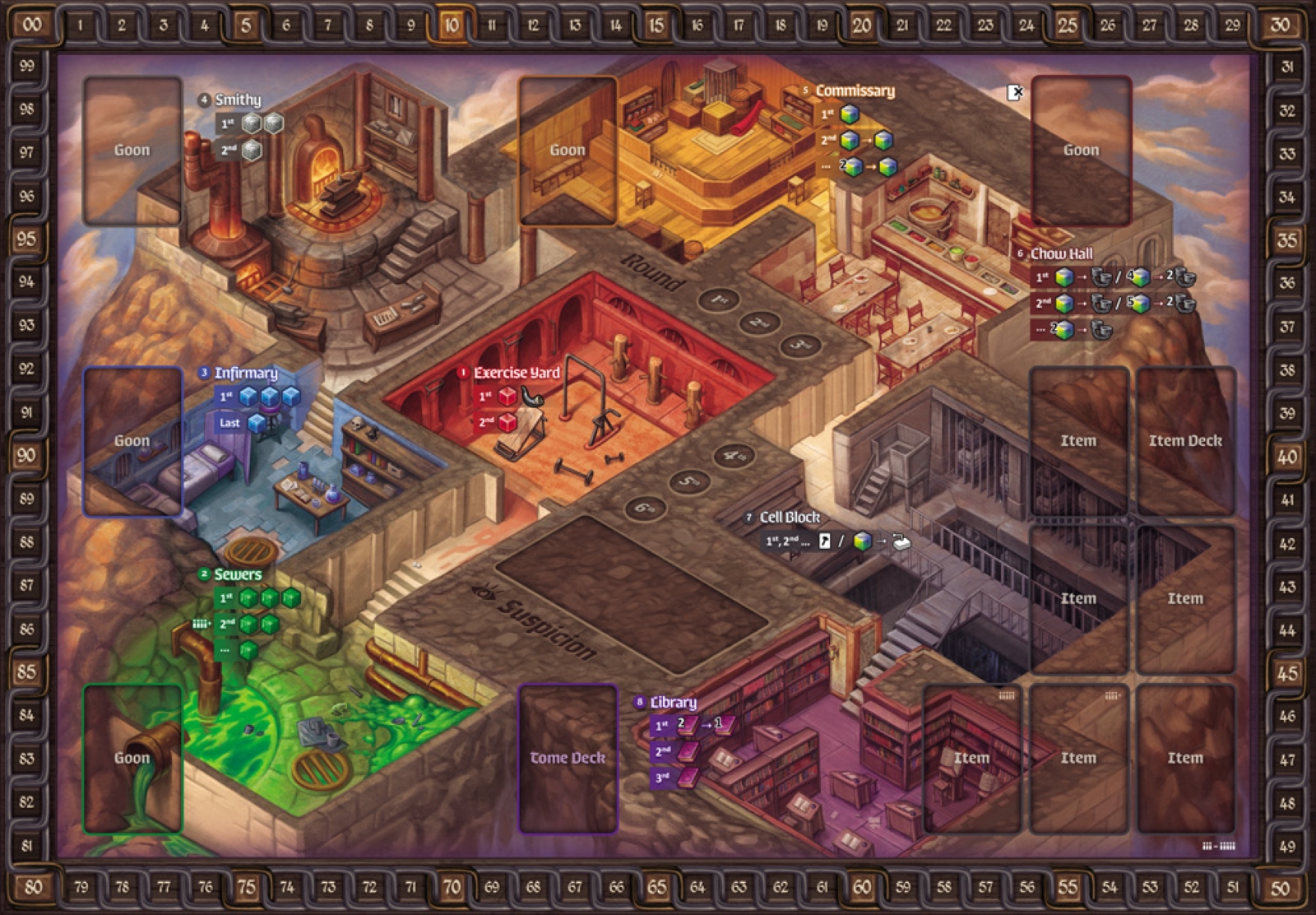 KEITH: It even influenced the artwork. We had built the board for Lockup and then pulled it out again for this chapter. We adjusted it to the strengths of an adventure-style game, but one of the strengths of any world you can get invested in is consistency, right? I want people to develop familiarity and make those connections.