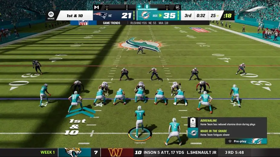 Quick little Miami Dolphins corner moment. While playing through a franchise as the Miami Dolphins I noticed some things that I felt like specifically Dolphins fans will enjoy. Tyreek Hill is FAST. And when I say fast, I mean, FAST. Waddle is also very quick leading to some wide-open plays for Tua. The offensive line is still horrible in regards to Madden, so be ready to run around like a mad-man. It’s been fun getting to know the new players and see some of what we might see from the Dolphins this year.