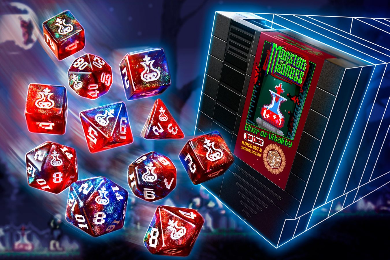 1UP-Dice takes that retro feel of our favorite console games and merges it with vibrant, sparkly RPG dice.