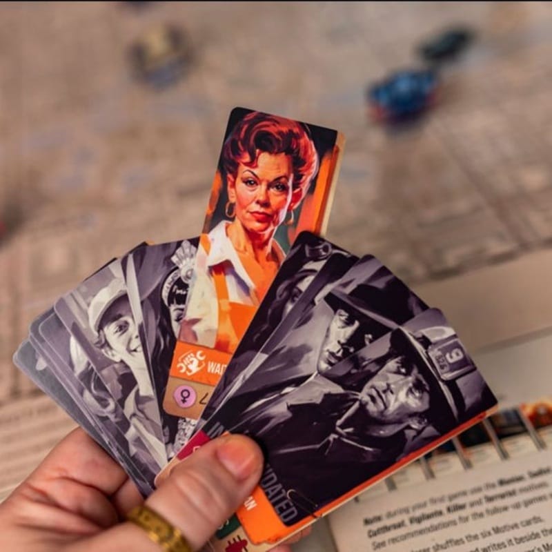 In this game the players divide into two groups, the murderer and the detective(s). The Murderer has to kill five civilians, while following their motive and hiding their identity. The Detective(s) has to identify the Murderer and determine their motive. The murderer also randomly chooses one of the civilian cards and motive cards that will be placed out unbeknownst to the detective(s). The game then proceeds in rounds with three phases: Murderer, Detective and City.