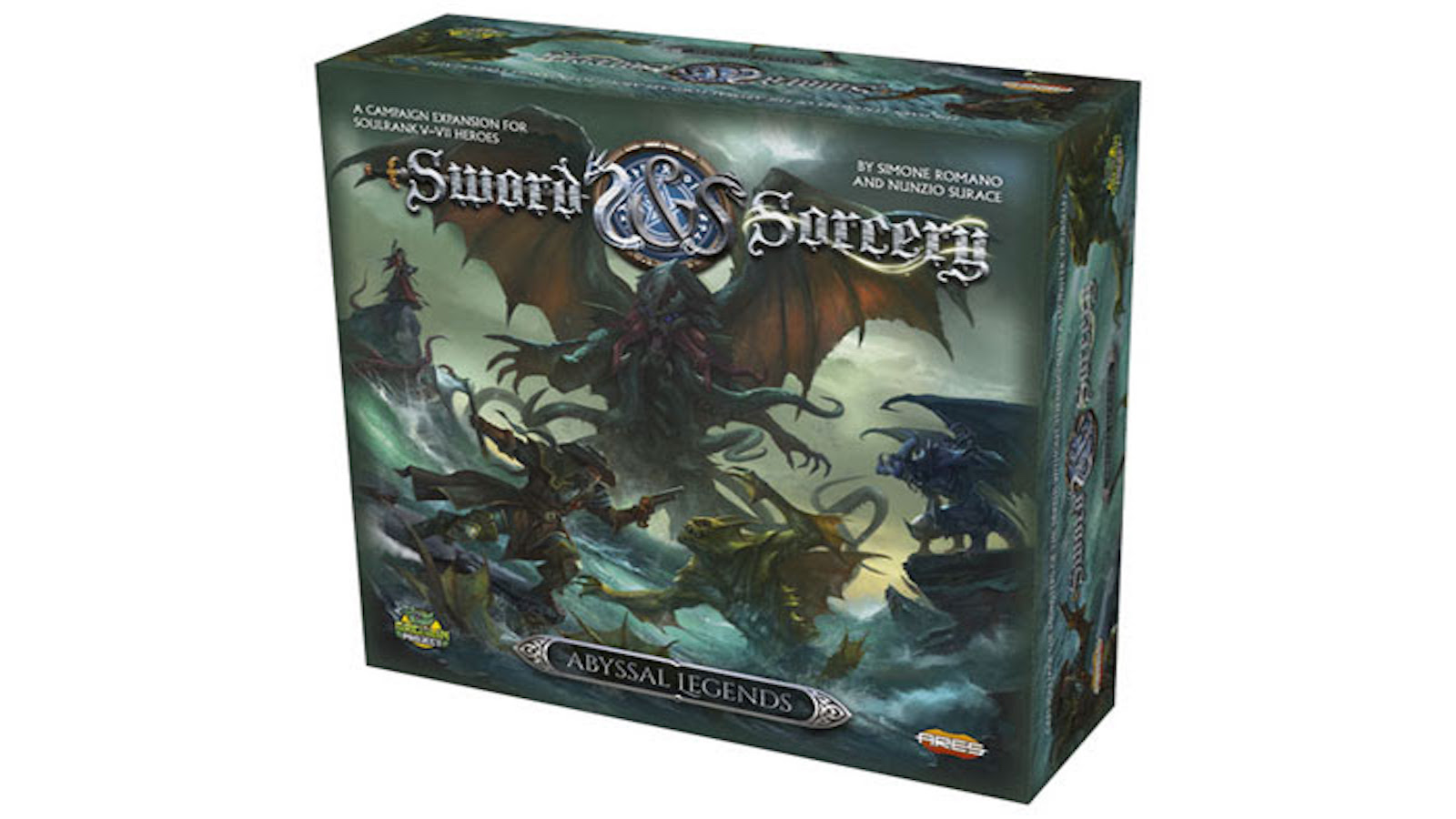 Sword & Sorcery is a fully cooperative fantasy board game where one to five players control legendary Heroes with unique powers. Recalled from the dead and made immortal by the will of the Three Gods, the Heroes embark on a quest to destroy false and corrupted deities fighting across land and sea. Weakened by the resurrection, they grow stronger during their story-driven quests. After the success of the first and second seasons, Abyssal Legends is a new campaign set which will bring the dark and scary vibes of the Cthulhu mythos to the Sword & Sorcery world, introducing fearsome new opponents and novel mechanics, including underwater adventures.