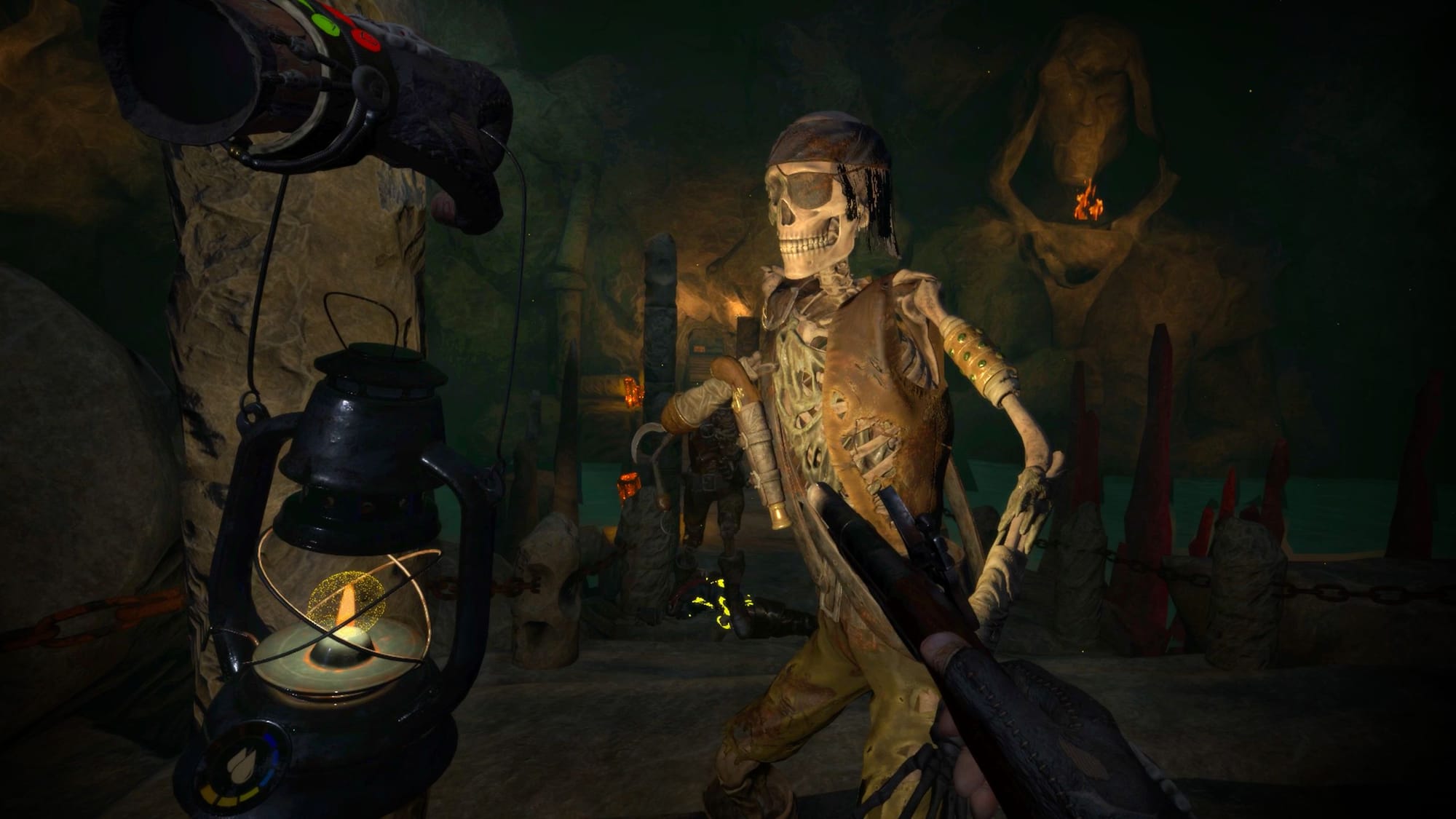 The game drops players on a tropical island where sun-soaked beaches, rocky cliffs, and dark caves await discovery, along with enemies ready to fight! The immersive experience in Pirates VR is built around mechanics that require your coordination. You’ll need to light up dark corners with your lantern, reload your flintlock pistol, and hold on tight to the zipline. Above all stay sharp, solve puzzles that require physical interaction, and dodge traps that might force you to duck, dive, or jump aside.