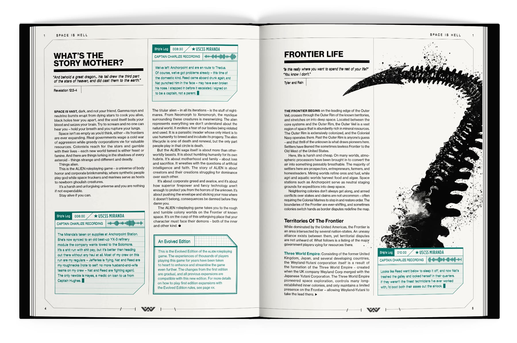 Redesigned as the perfect starting point for newcomers to roleplaying in the ALIEN universe, the new Evolved Edition of the Starter Set contains everything players need for game night, including abridged rules, character sheets, custom dice, larger miniature-friendly game maps, initiative cards, reference cards, various handouts, tokens, and an expanded Evolved edition of the fan-favorite Hope’s Last Day scenario set on Hadley’s Hope just prior to the unforgettable events of ALIENS.