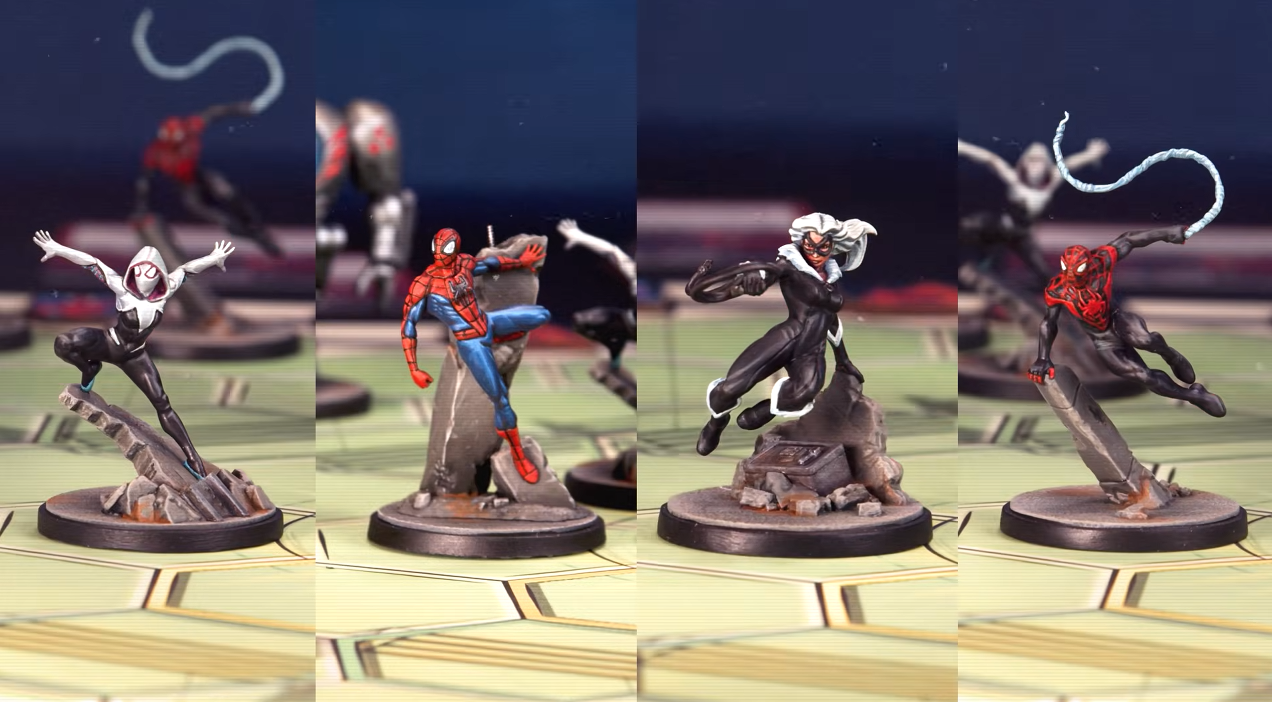 In Marvel: Crisis Protocol (MCP) Alliances, 1 to 4 players players team up to battle against a super villain and their minions. For the first expansion released, Night of the Goblin, players can play as Spectacular Spider-Man (Peter Parker), Spider-Man (Miles Morales), Ghost Spider (Spider Gwen), and Black Cat. Players will need to work together to battle Norman Osborn, a.k.a. the Green Goblin, and his Goblin Minions, which are a collection of thugs in goblin masks, henchman on gliders, and some slick, 90s-themed robots.