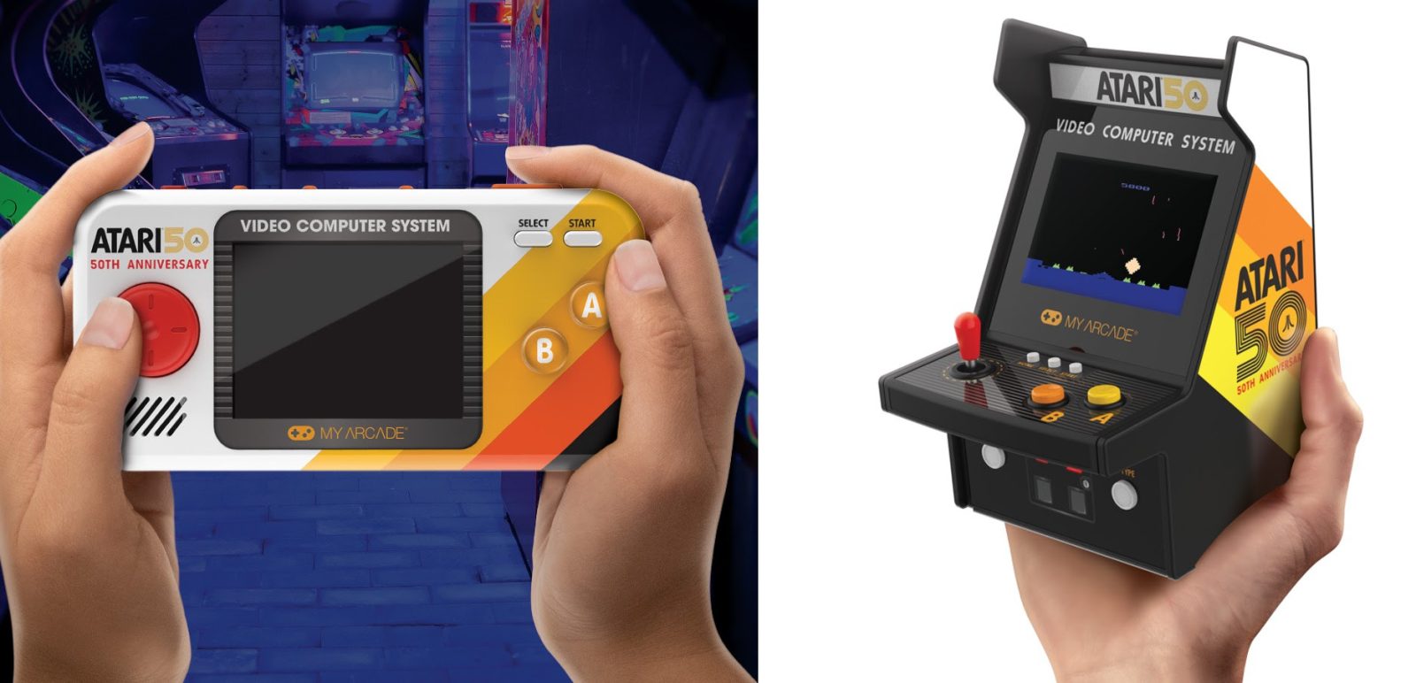 The Atari 50 Pocket Player Pro ($39.99 USD) is a stylish handheld with a 2.75-inch full color screen and 100 built in Atari titles and bonus games.