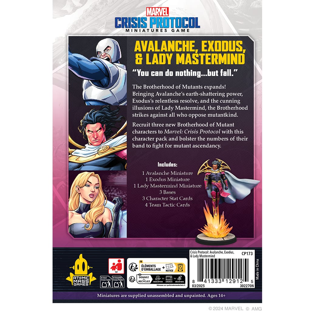 CP173 includes a variety of Brotherhood of Mutant characters to expand and showcase more X-Men villains and characters. Bringing thematic gameplay to the table, with new abilities and rules, these new characters are an exciting addition to the Brotherhood of Mutants.