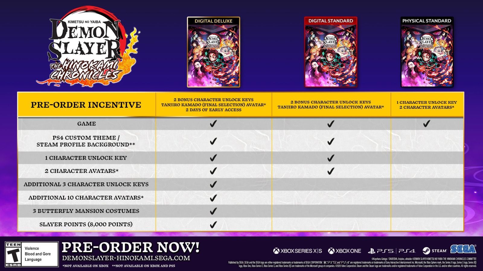 Pre-order Demon Slayer -Kimetsu no Yaiba- The Hinokami Chronicles from PlayStation Network and the Xbox Games Store now! The digital Standard Edition contains: