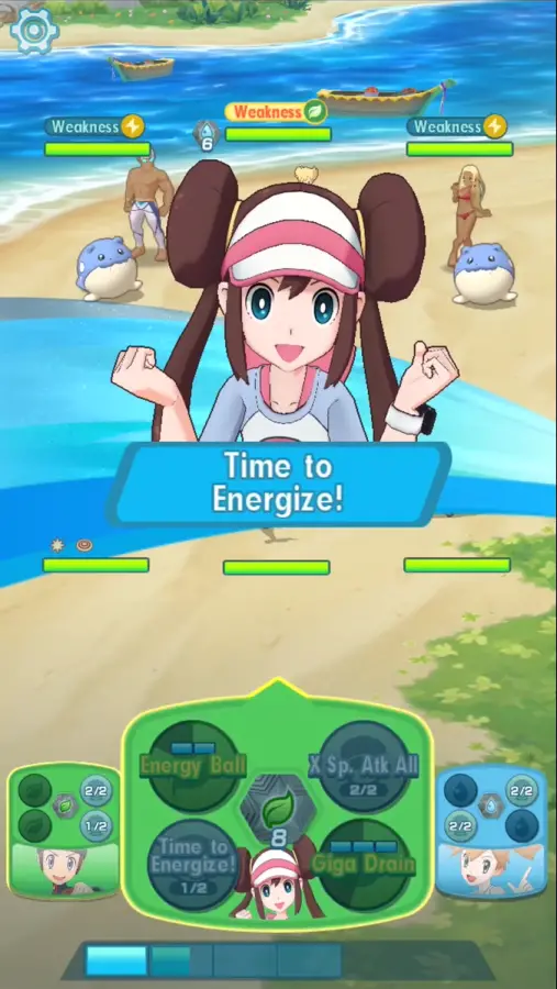 The 3-on-3, real-time battle mechanic in Pokémon Masters is a novel twist on Pokémon battles. Players will be able to release a barrage of moves while their AI (artificial intelligence) opponent unleashes attacks at the same time. Each move requires a certain amount of the player’s move gauge, which will continuously refill during the course of battle. In addition to standard moves, players can occasionally deploy sync moves—powerful attacks performed by a specific sync pair. The battle is over once a player defeats their AI opponent’s team of sync pairs. Players will need to form their team, ration their move gauge, and strategically deploy the best moves at the most opportune times to ensure victory!
