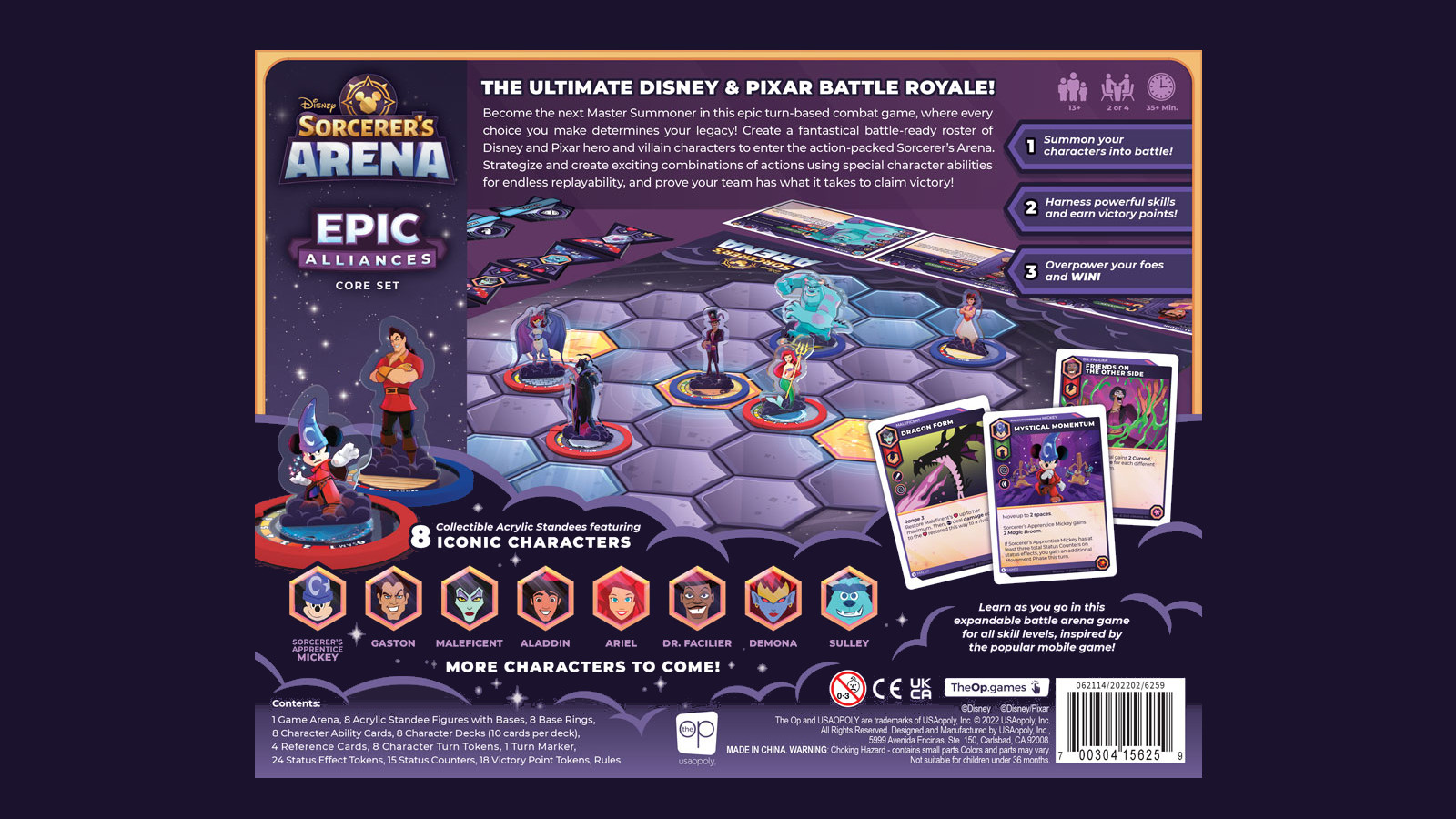 The Op brings the mobile game Disney Sorcerer’s Arena to the tabletop with their new game Disney Sorcerer’s Arena: Epic Alliances, available now! Just like the mobile game, 2 to 4 players will pit Disney and Pixar champions against each other in the battle arena.