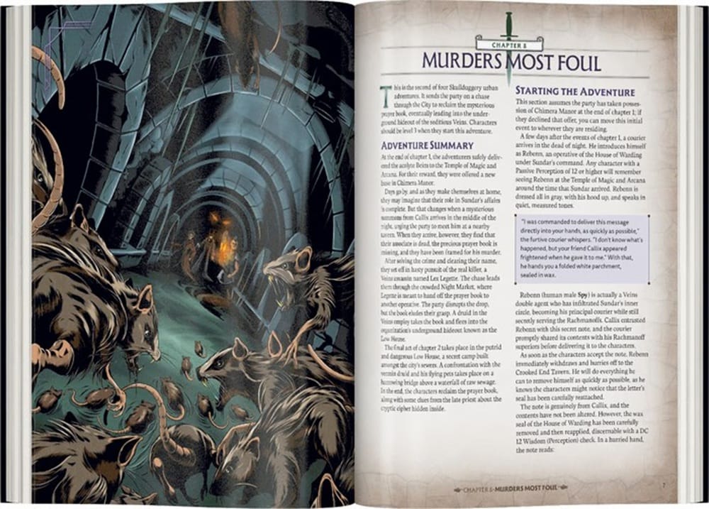 Skullduggery is a 5E urban fantasy companion, filled with new city-inspired subclasses, backgrounds, feats, spells, and equipment. In addition, it comes with city establishment and organization ideas and 4 chapters of an all-new urban-themed Adventure that can be dropped into any campaign: The Oppression of Blood.