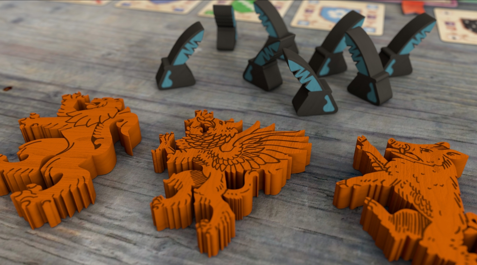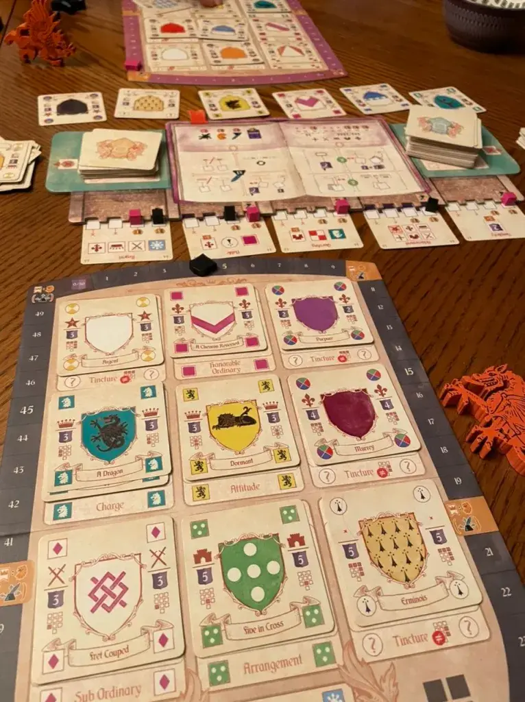 Blazon, a new card drafting game in which players take on the role of a medieval herald and create their own shields, launched today on Kickstarter and will run until January 19th, 2022. More details and a few pictures can be found below: