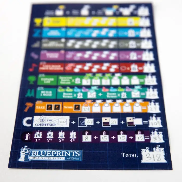 One of the amazing components Blueprints of Mad King Ludwig features is the pad of vellum paper, reminiscent of architectural drafting paper yet durable enough for colorful sketches. You will truly feel like an architect rotating and drawing rooms on your vellum paper!