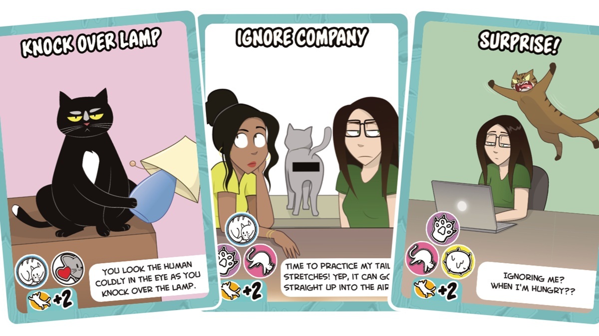 Be careful not to run out of Cat Cards, players need to make tough choices about which Humans to annoy and which chaos to cause.