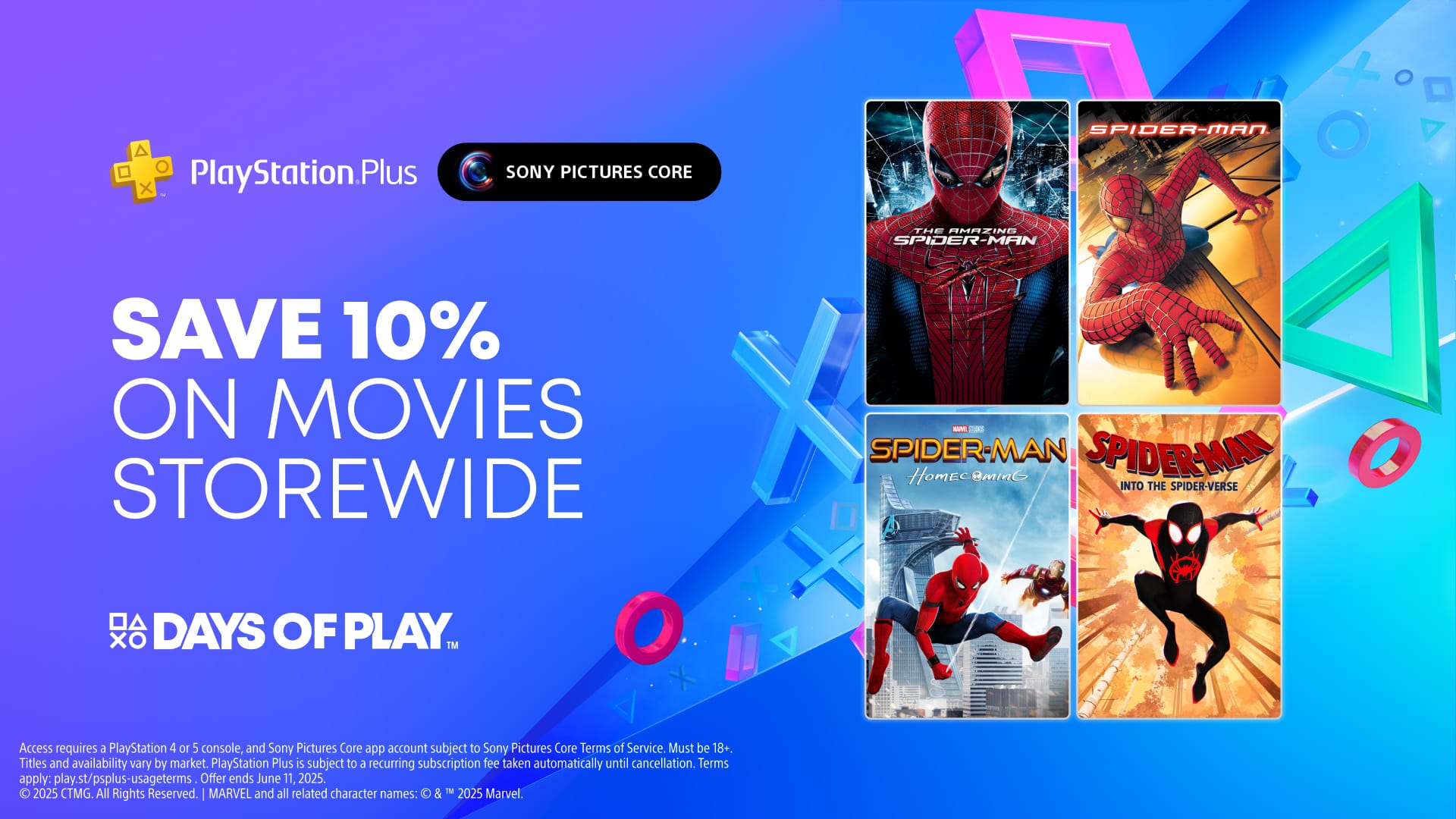 Keep an eye out for sales on PlayStation Productions movies throughout Days of Play on Sony Pictures Core! Additionally, PlayStation Plus members can enjoy 10% off movies store-wide on Sony Pictures Core as well as double discounts for limited-time Flash Sales dropping every few days from May 28 through June 11, including super-hero blockbusters and more.*