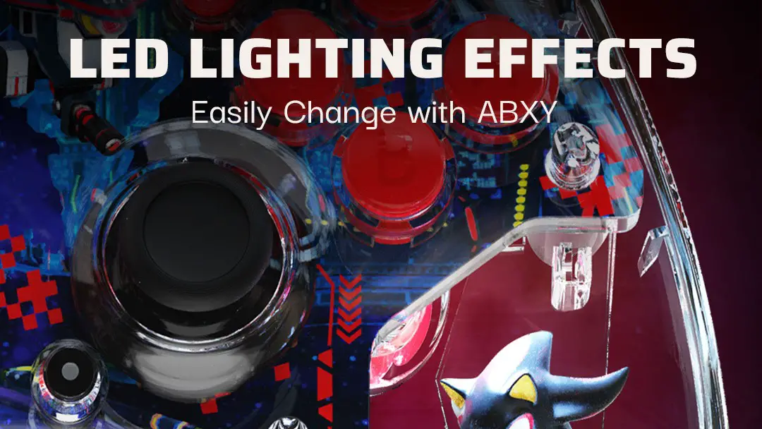 The Sonic REALMz: Shadow Space Colony ARK controller has a multi-layered design showcasing the iconic Space Colony ARK scene from the Sonic franchise. The controller is compatible with Nintendo Switch, Nintendo Switch Lite, and Nintendo Switch OLED Model systems, and lets gamers play comfortably from the couch with its 30-foot wireless range. It also has a built-in rechargeable battery providing up to 30 hours of gaming per charge. Additionally, customizable LED lighting effects add another layer to the look and feel of this creative Sonic game controller.