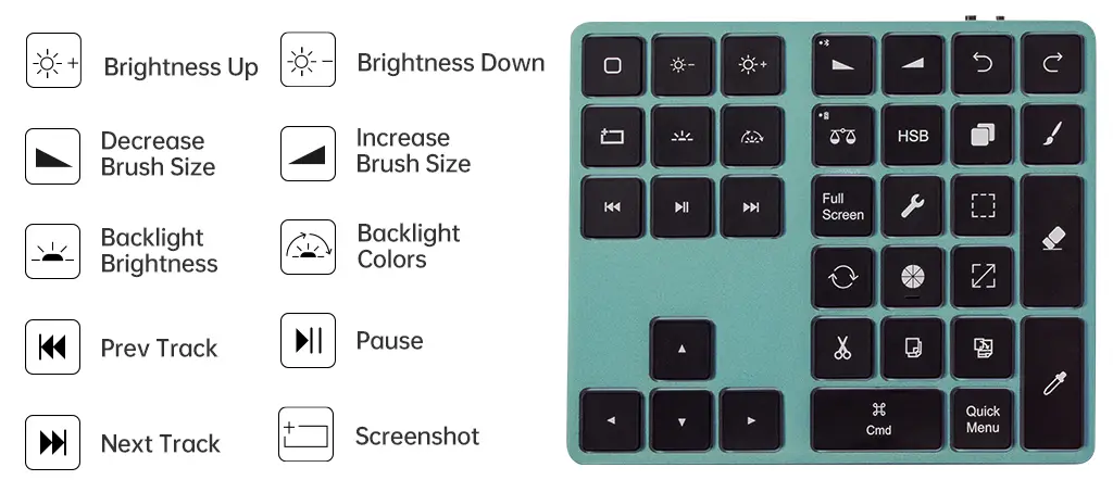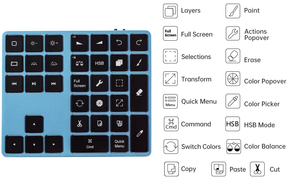 No more fatigue from repetitive motions, you can keep your eyes on the project and quickly switch positions while barely moving a muscle. Designed for intuitive operation, you will quickly build the muscle memory to learn where each shortcut button is and working with Procreate® will be faster, easier, and less stressful on your wrists.
