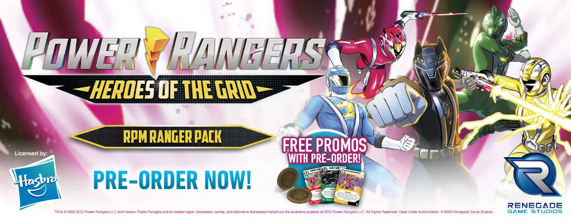 The RPM Rangers are here! This expansion adds the RPM team to Heroes of the Grid! Add the 5 RPM rangers (Red, Blue, Yellow, Green, Black) to your game!