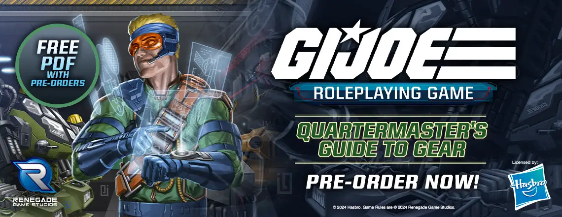 The Quartermaster’s Guide to Gear is the definitive equipment and vehicle guide for the G.I. JOE Roleplaying Game! From personal weapons to cutting-edge vehicles and battle stations, this book has you covered. This sourcebook includes 16 new weapons from G.I. JOE’s history, a new armor type, 40 upgrades, and 18 new vehicles! Also inside is a new focus for each role, 3 new origins, and 8 new influences!