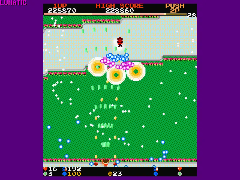 Chuhou Joutai takes you through eight treacherous stages in the capital city of Kozankyo filled with opponents that will throw colorful attack patterns which you’ll need lightning-fast reflexes to get through. You can focus your attacks to get through tight spaces and if you’re in a tight pinch, you can throw a bomb to clear the screen! Hair-pin curves and dare-devil turns – you’re gonna need to make these to survive. Think you’re up to it? Now get out there and show SPASDOT what you’re made of!